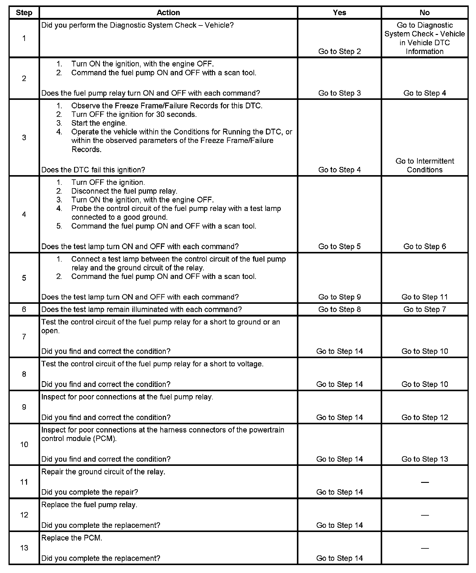 - The PCM detects an incorrect voltage on the control circuit of the fuel pump relay.