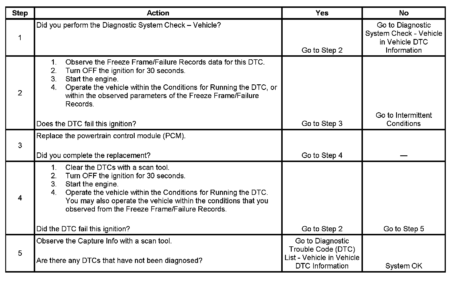 - A current DTC, Last Test Failed, clears when the diagnostic runs and passes.