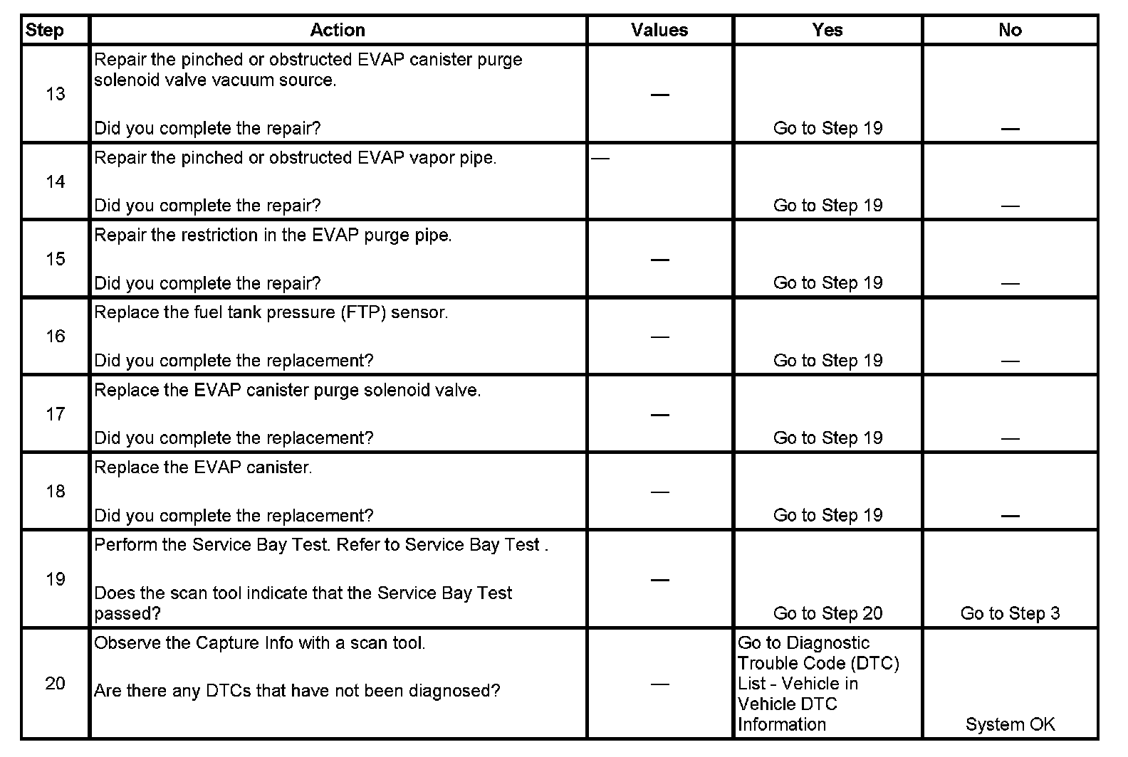 - A current DTC, Last Test Failed, clears when the diagnostic runs and passes.