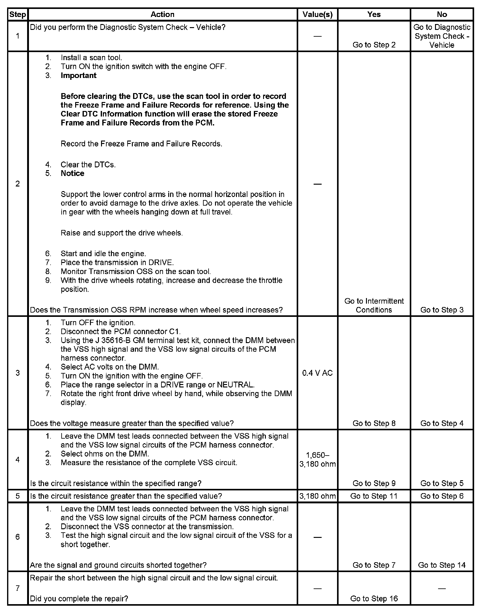 3. This step tests the ability of the VSS to produce an AC voltage. This step also verifies the integrity of the wiring to the PCM.