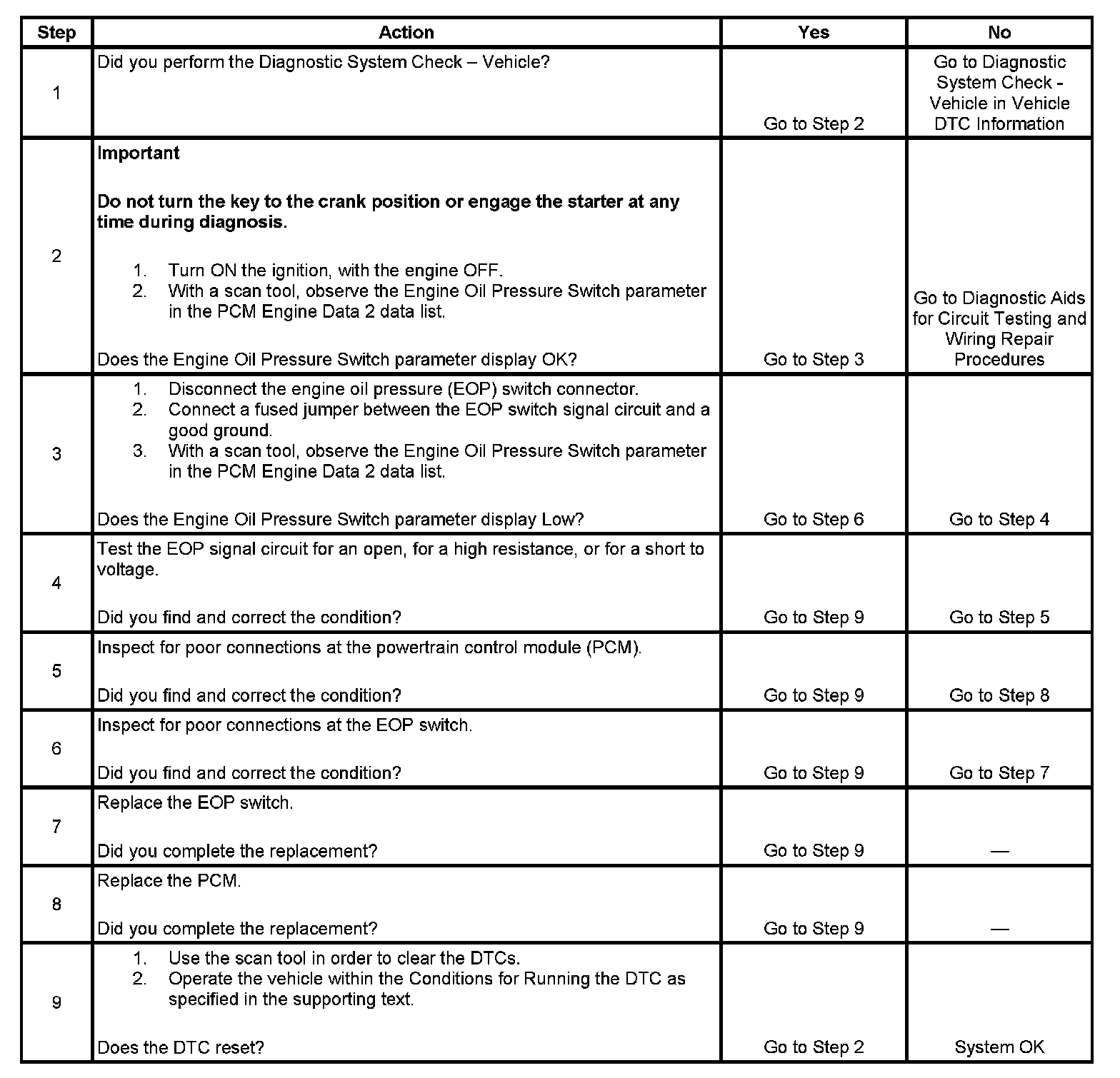 DTC P0520 Engine Oil Pressure (EOP) Switch Circuit
