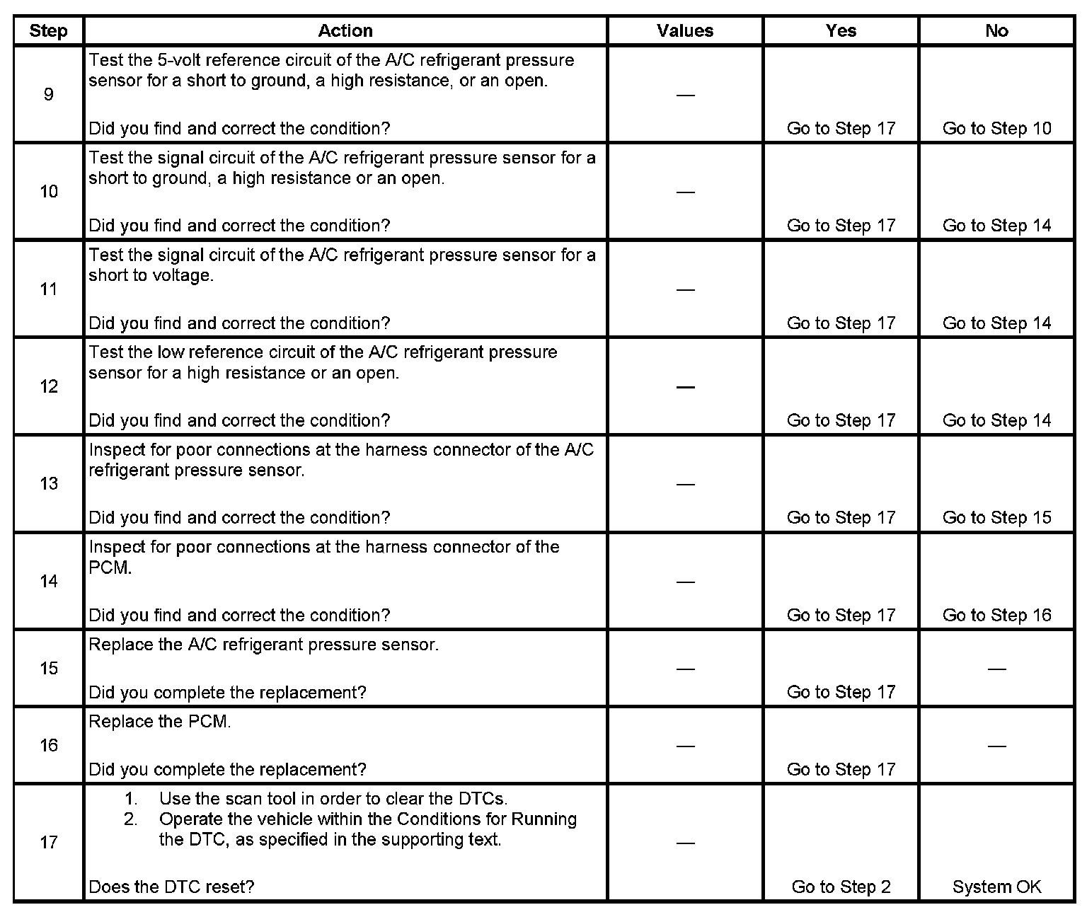 If the condition is not present, refer to Testing for Intermittent Conditions and Poor Connections in Diagnostic Aids.
