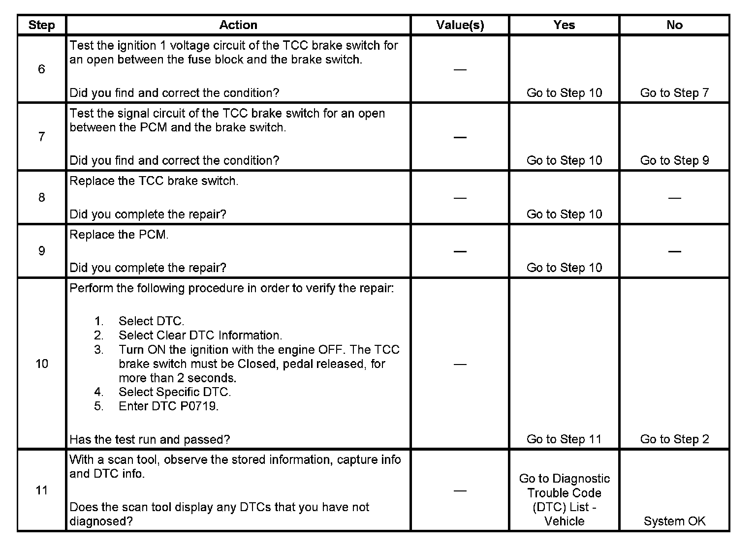 ^ The PCM stores DTC P0719 in PCM history.
