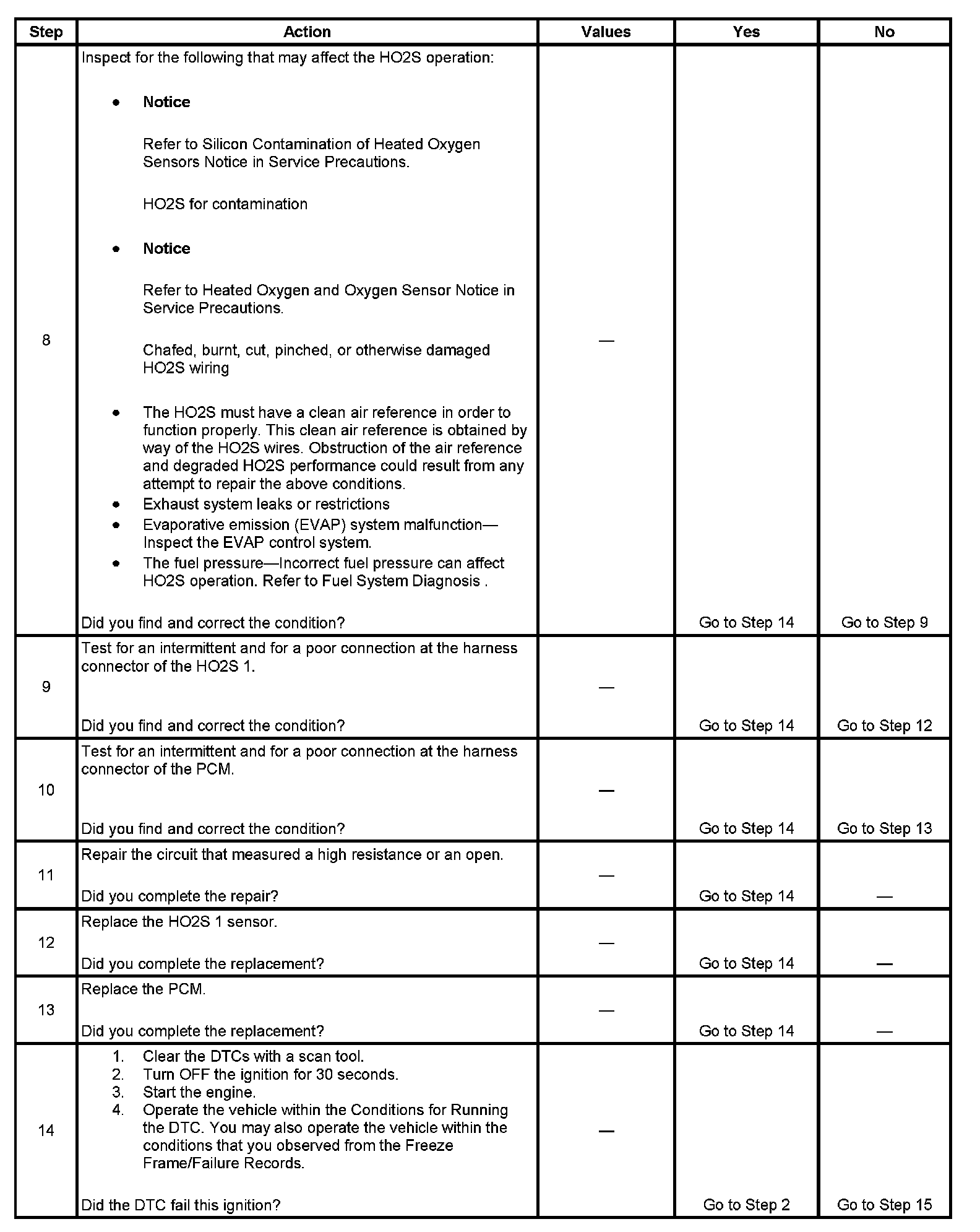 - DTCs P0030, P0053, P0101, P0102, P0103, P0107, P0108, P0112, P0113, P0116, P0117, P0118, P0120, P0125, P0128, P0131, P0132, P0134, P0135, P0201, P0202, P0203, P0204, P0205, P0206, P0220, P0300, P0442, P0443, P0446, P0449, P0451, P0452, P0453, P0454, P0455, P0464, P0496, P2135 are not set.