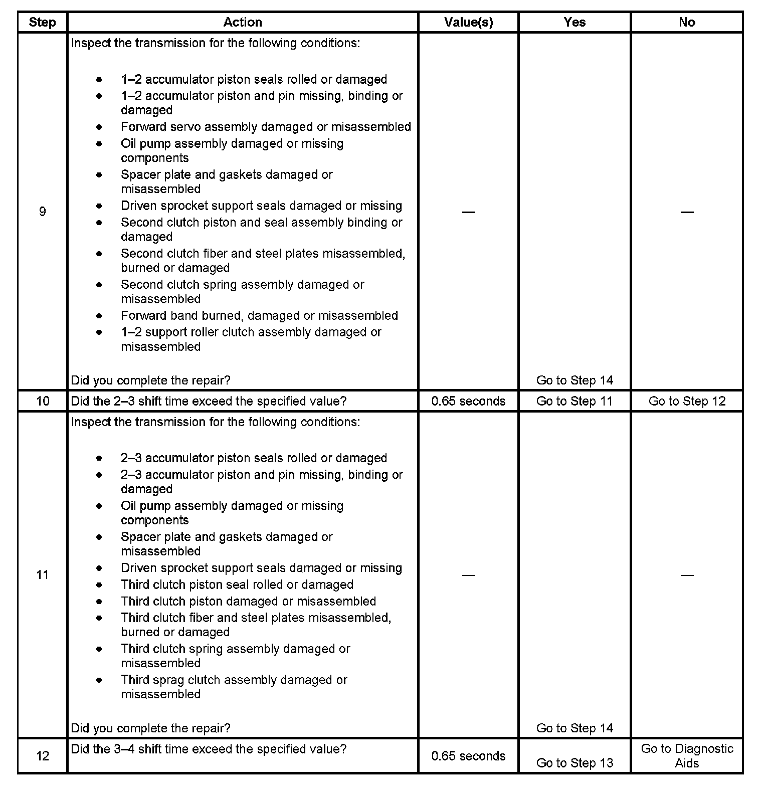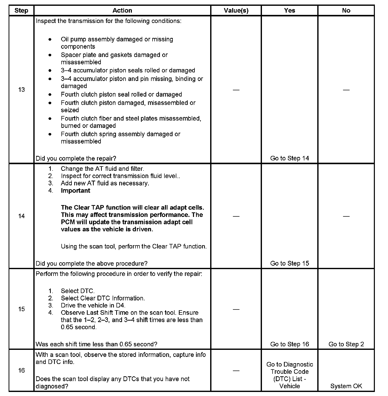 13. This step inspects or repairs components that may cause a maximum adapt and long 3-4 upshift.