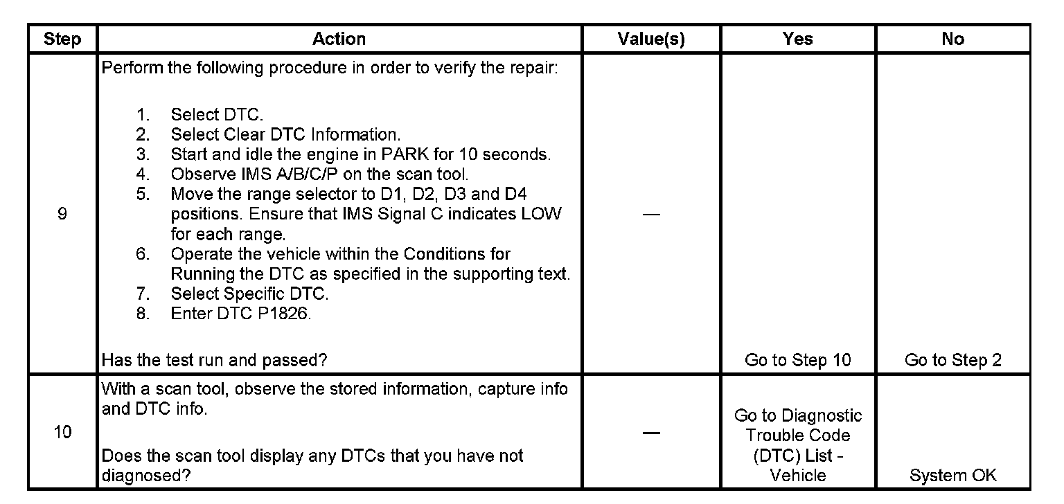 If the PCM detects that IMS Signal C is high while the vehicle is being driven in a forward gear, then DTC P1826 sets. DTC P1826 is a type C DTC.