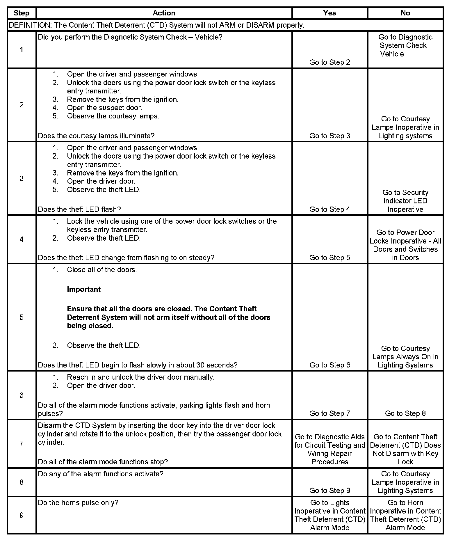 Alarm Mode Inoperative - Content Theft Deterrent (CTD)