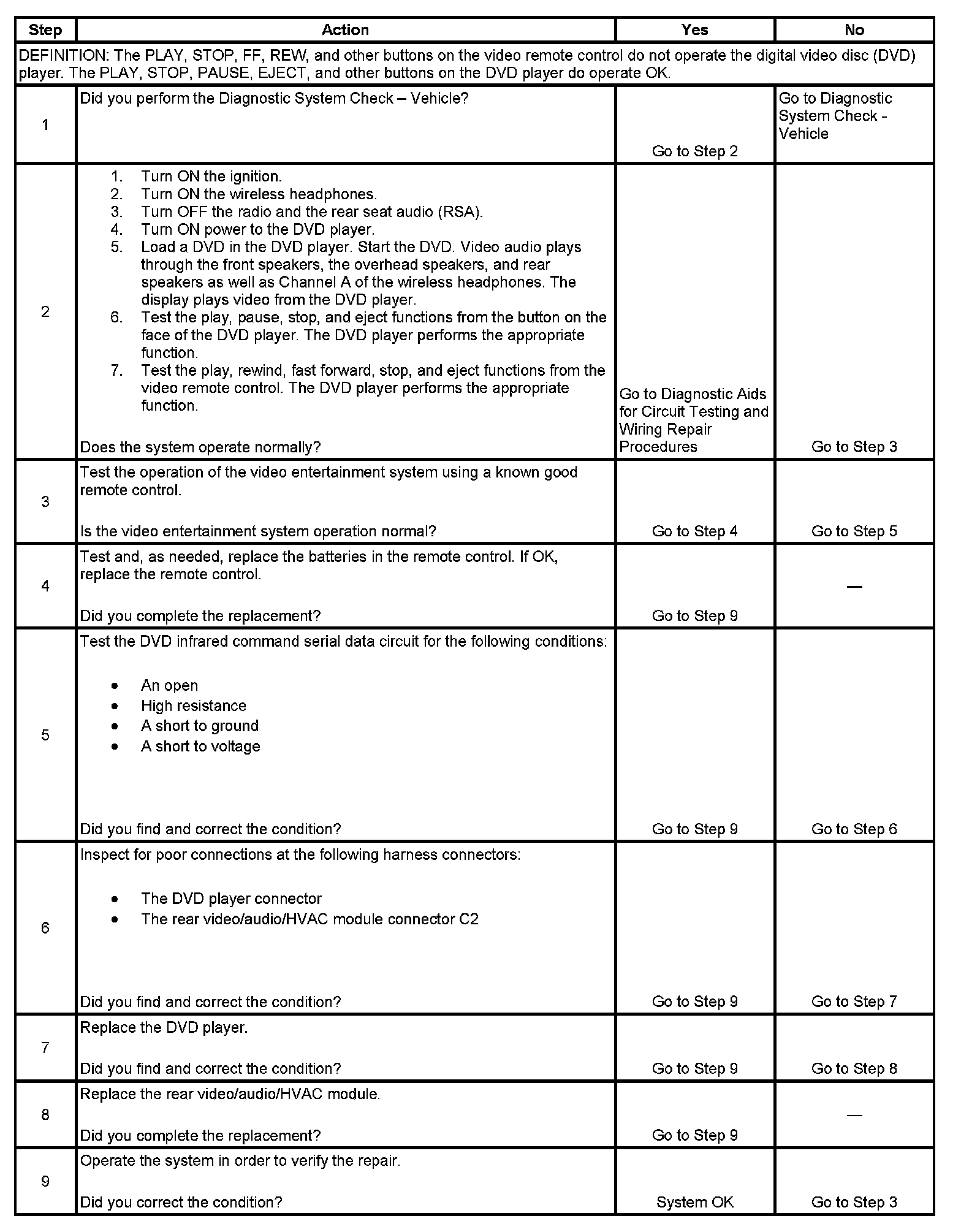 Video Entertainment System Remote Control Inoperative