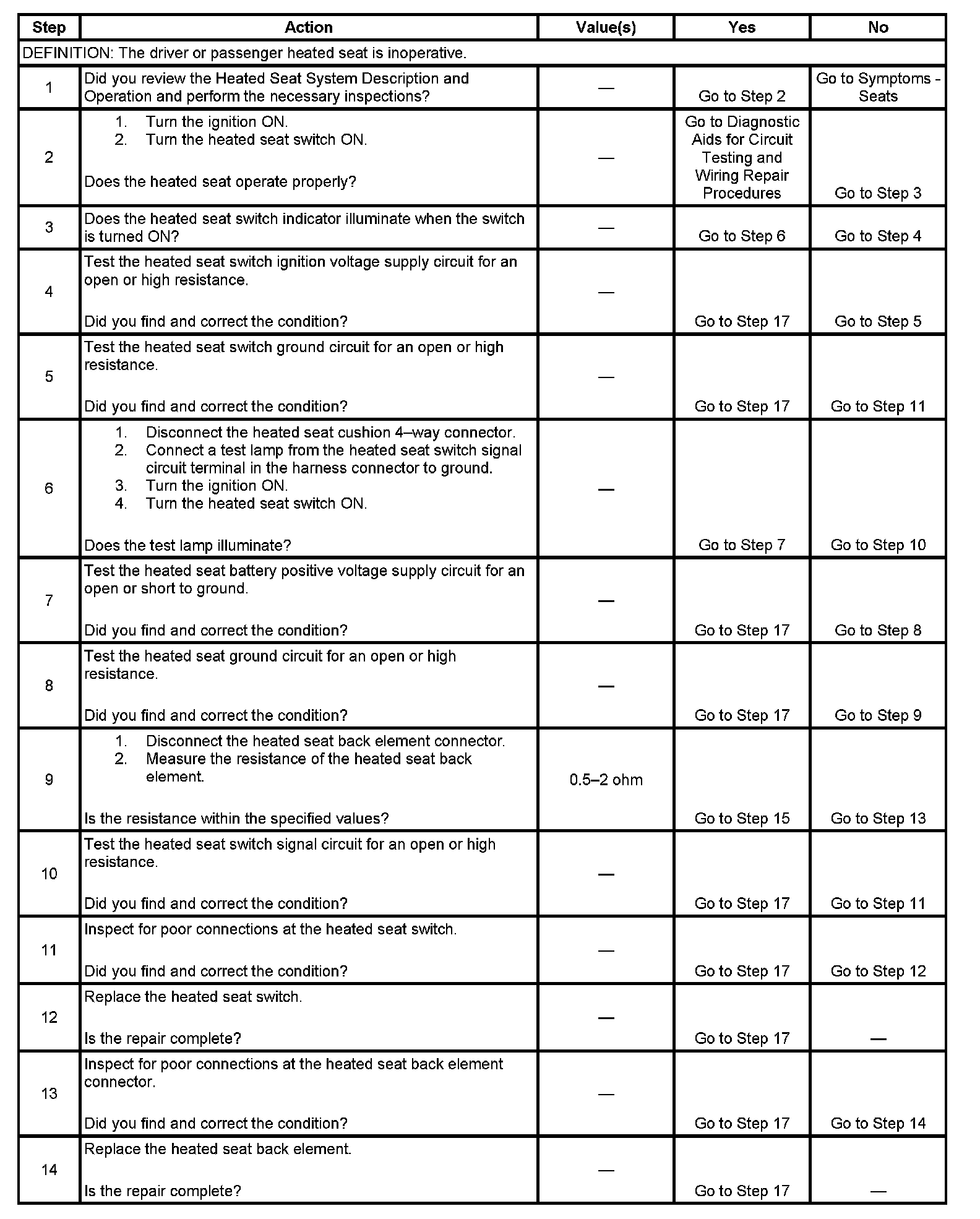 Heated Seat Inoperative