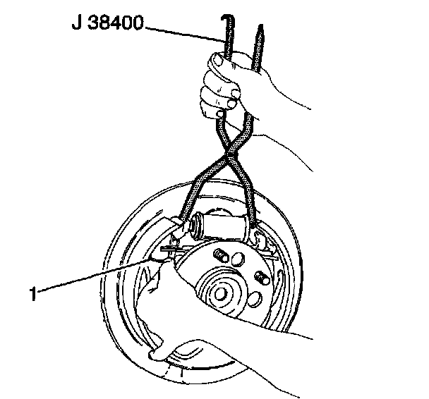 2. Use the J 38400 in order to spread the brake shoes apart.