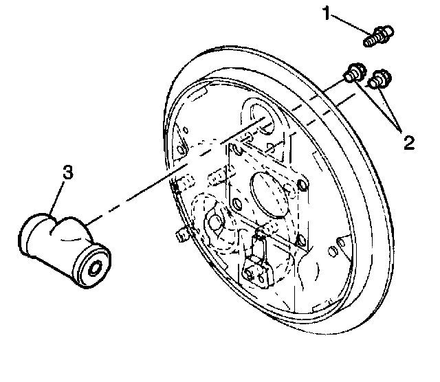 1. Apply LOCTITE GM P/N 12345382 (or equivalent) to the wheel cylinder shoulder face, which contacts the backing plate.