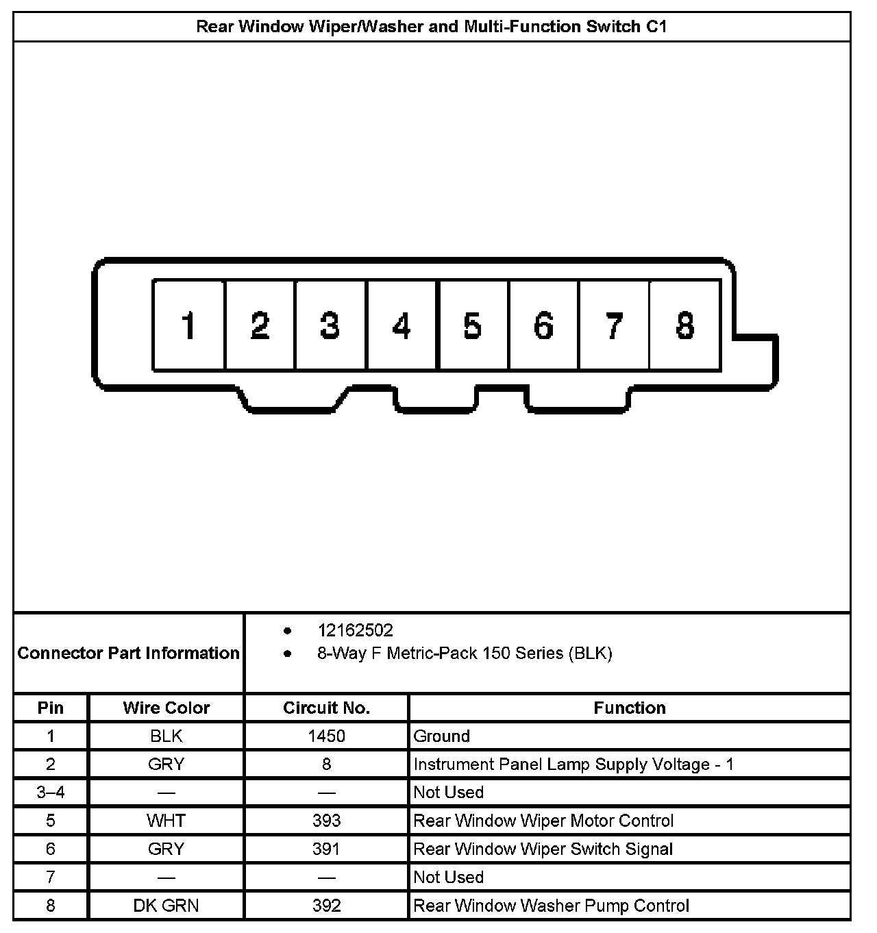 Rear Window Wiper/Washer and Multifunction Switch Connector C2, Blower Switch - Auxiliary: