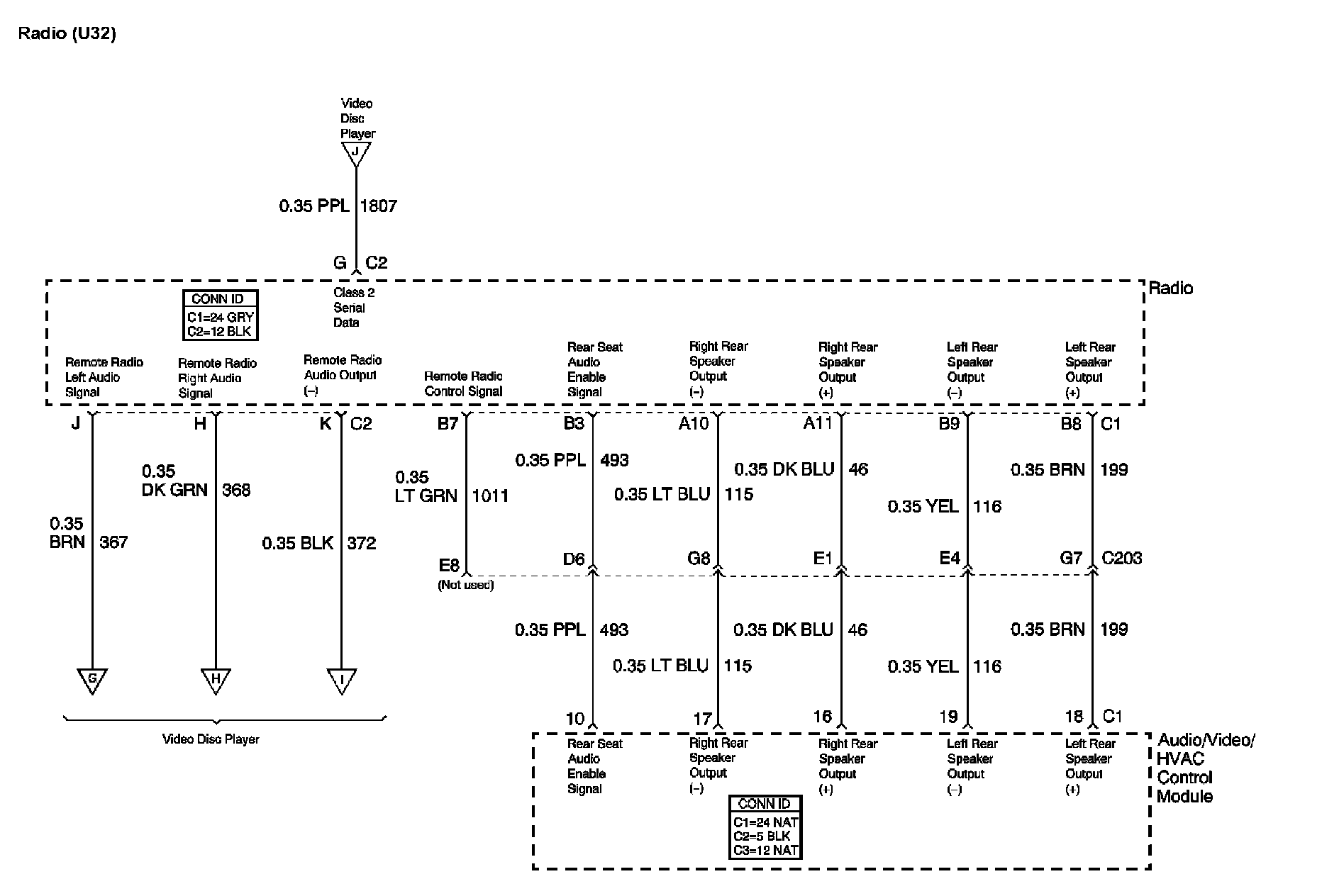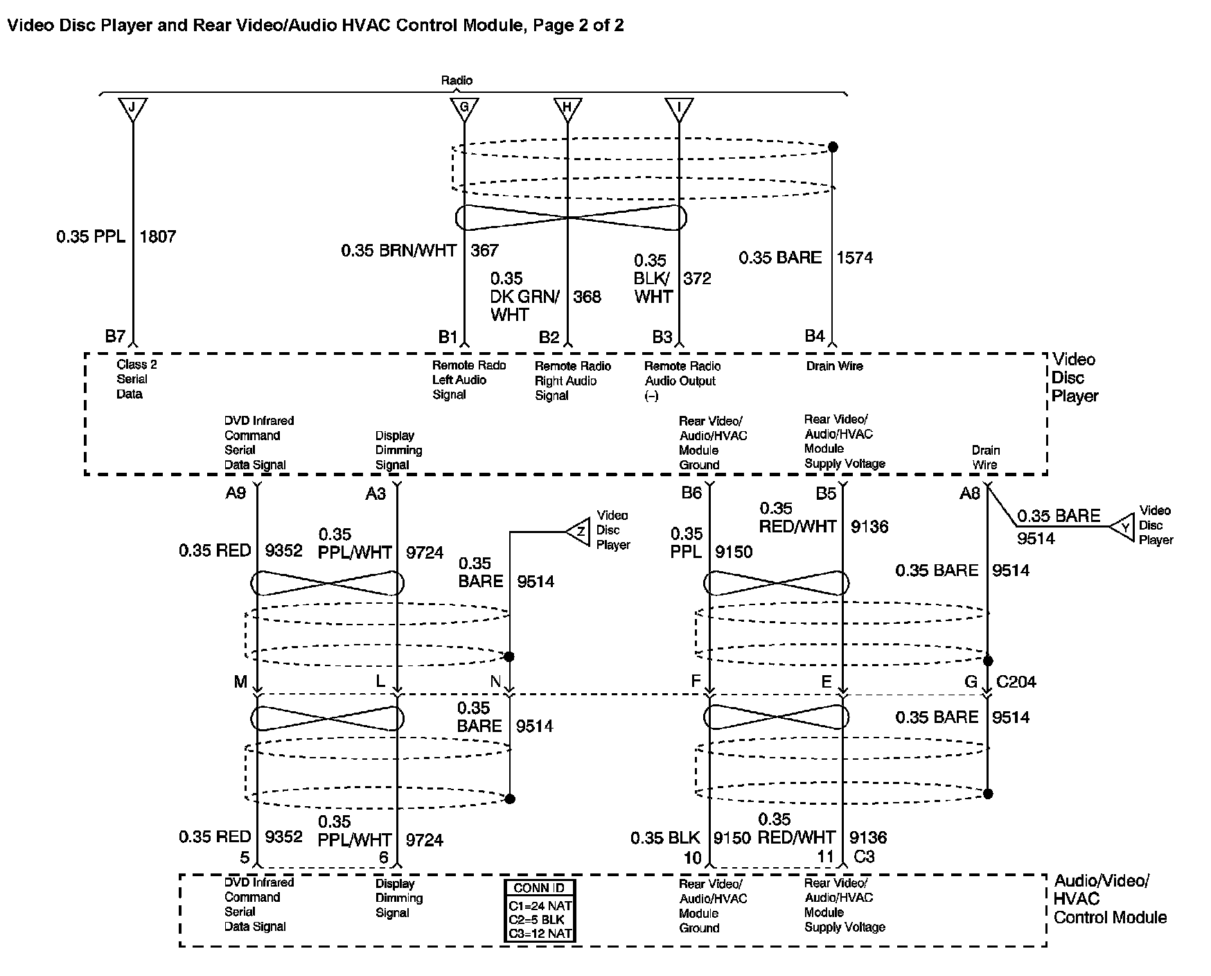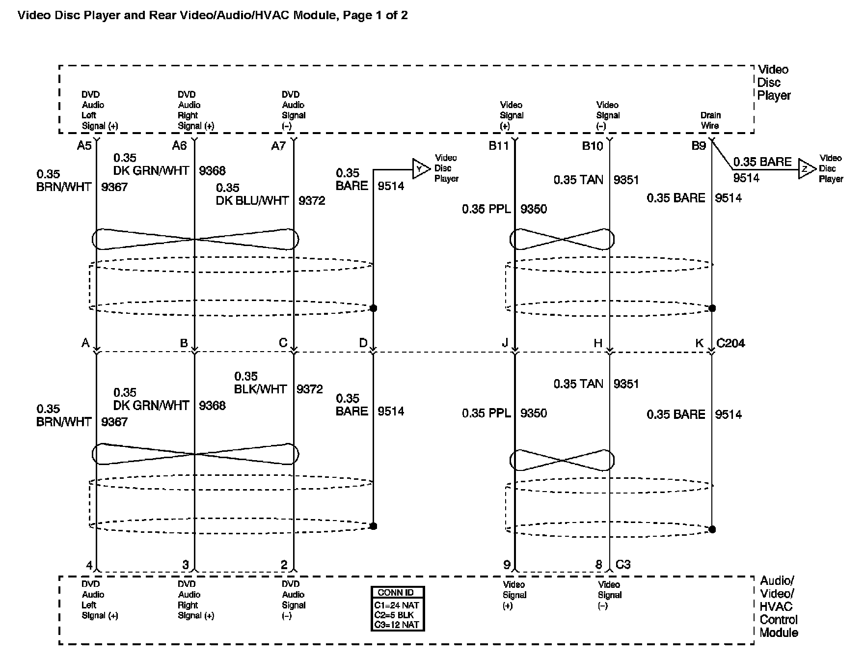 Location: The locations for the Connectors, Grounds, Splices, and Grommets shown within these diagrams can be found via their at Vehicle Locations. Locations