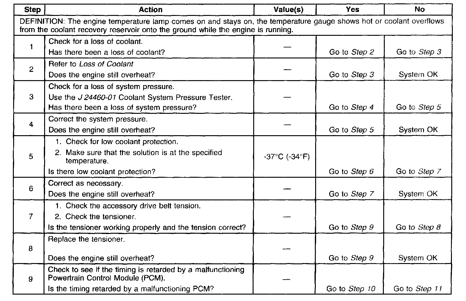 Engine Overheating Step 1 - 9: