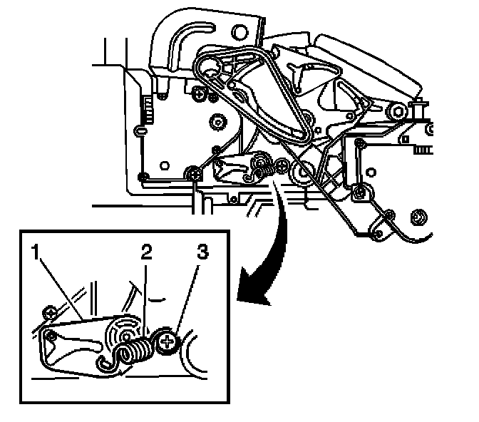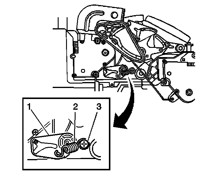 2. Remove the temperature door lever bolt (3) from the HVAC module.