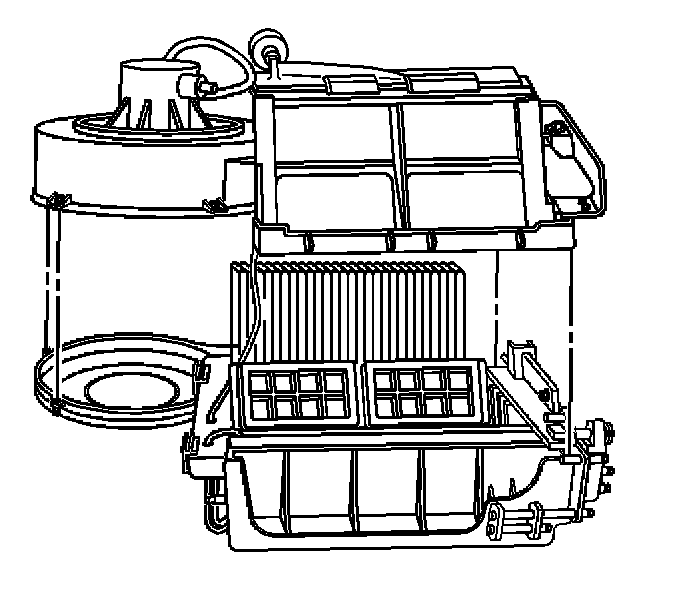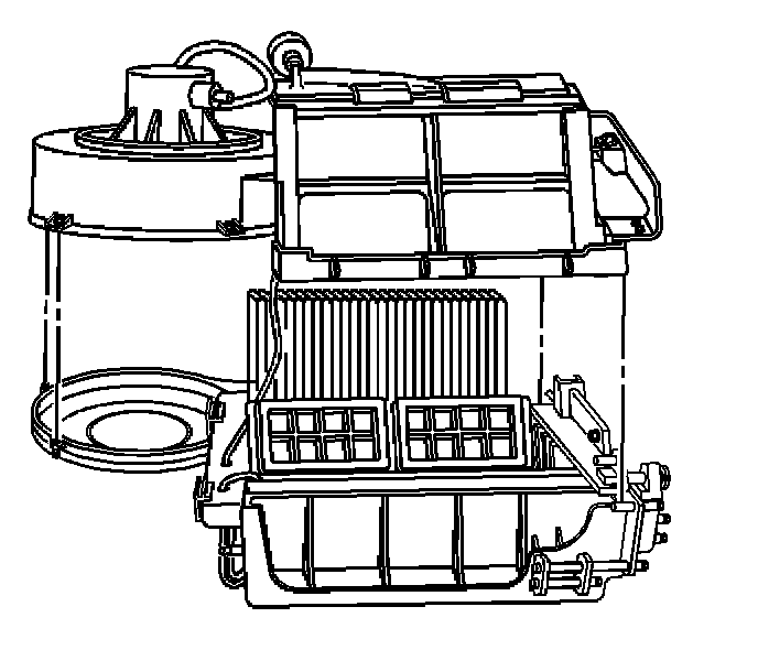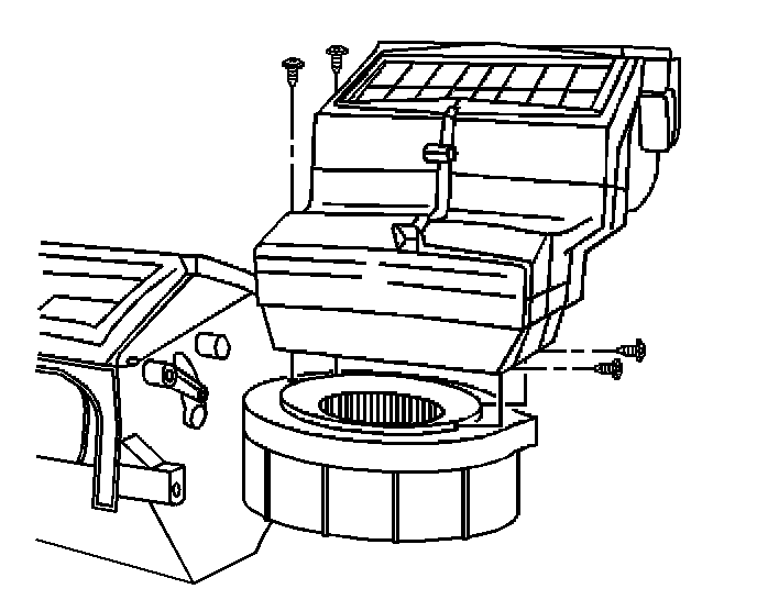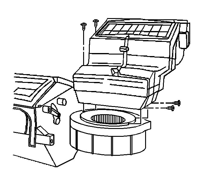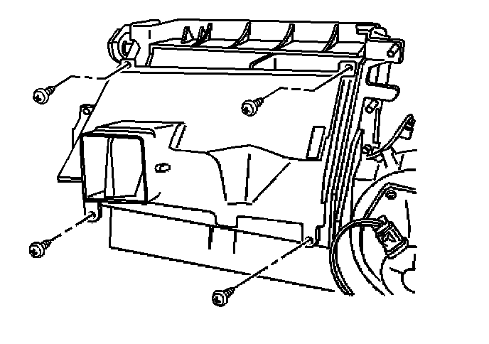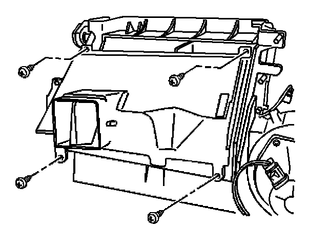 Important: The lower HVAC module assembly retaining screw is located behind the heater core.