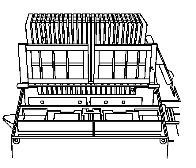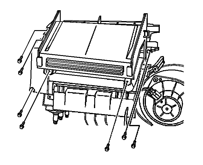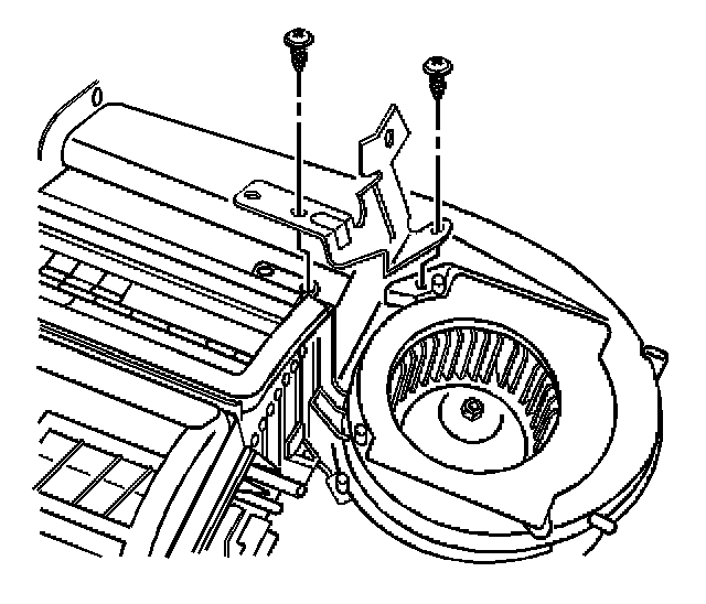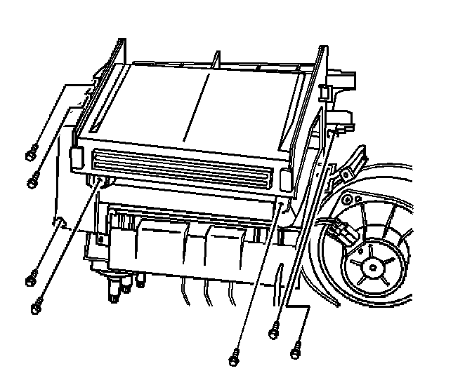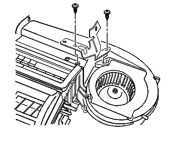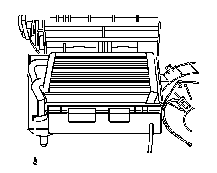 Important: The HVAC module assembly upper retaining screw is located under the right HVAC module assembly mounting bracket.
