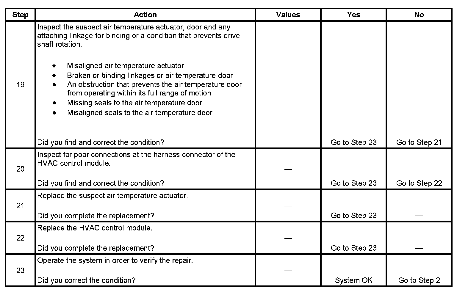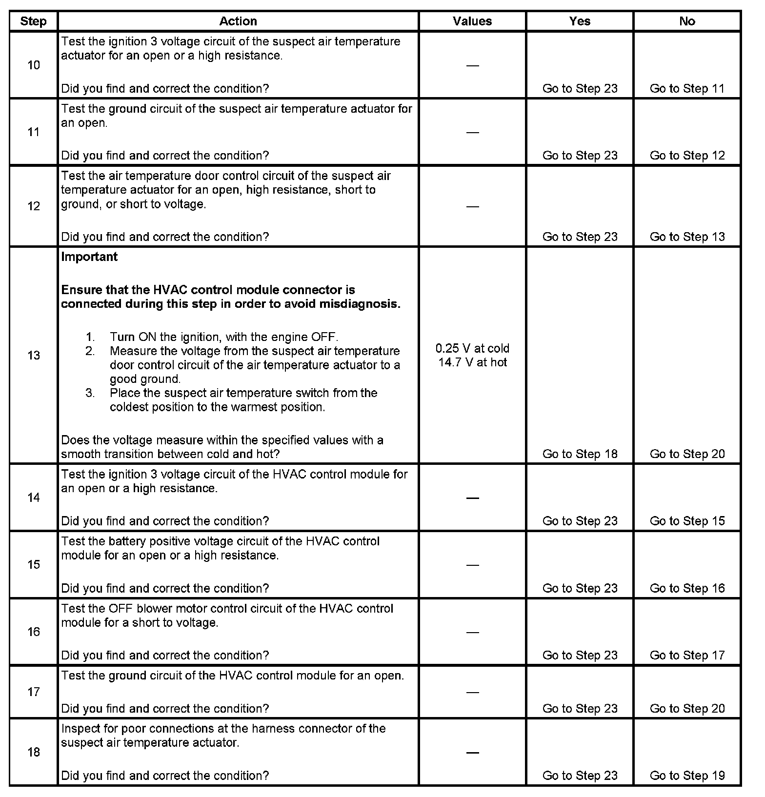 13. The voltage will vary between 0.25-14.7 volts during normal operation. The HVAC control module connector must be connected during this step.