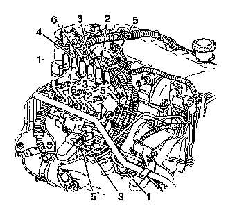 5. Remove the spark plug wires (1, 3, 5) from the rear bank spark plugs.