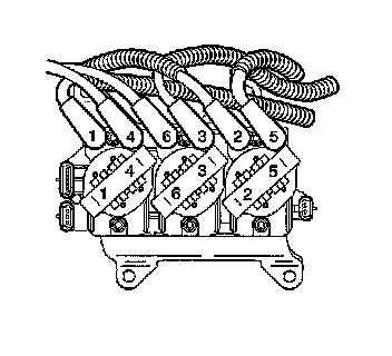 2. Remove the spark plug wires (2, 4, 6) from the front bank spark plugs.