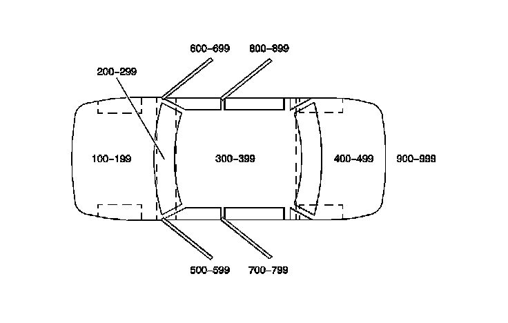 All grounds, in-line connectors, pass-through grommets, and splices have identifying numbers that correspond to where they are located in the vehicle. The table explains the numbering system.