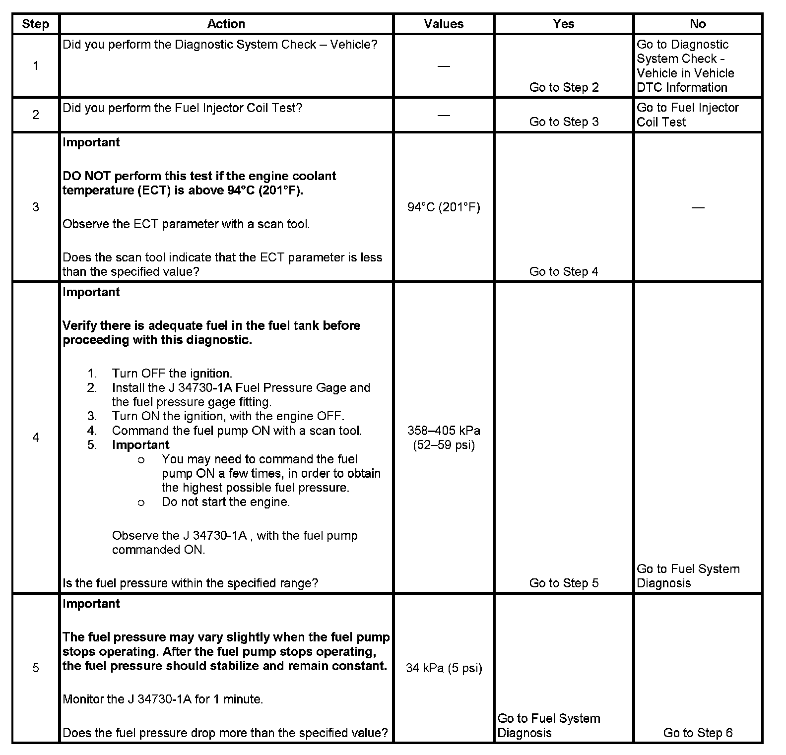 3. The engine coolant temperature (ECT) must be below the operating temperature in order to avoid irregular fuel pressure readings due to hot soak fuel boiling.