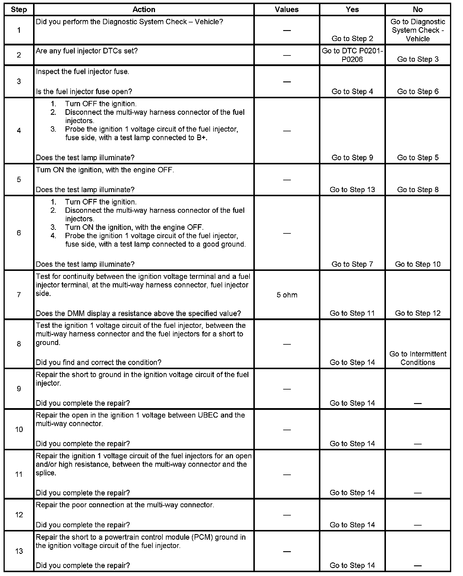 - Performing the Fuel Injector Coil Test may help isolate an intermittent condition. Refer to Fuel Injector Coil Test. Component Tests and General Diagnostics