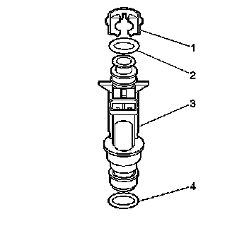 5. Remove the fuel injector lower O-ring (4).