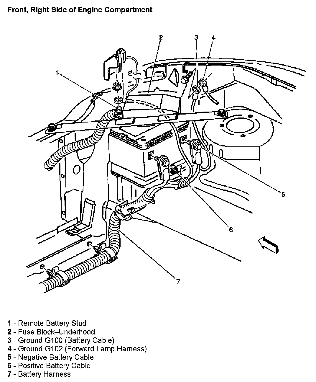 Front, Right Side Of Engine Compartment: