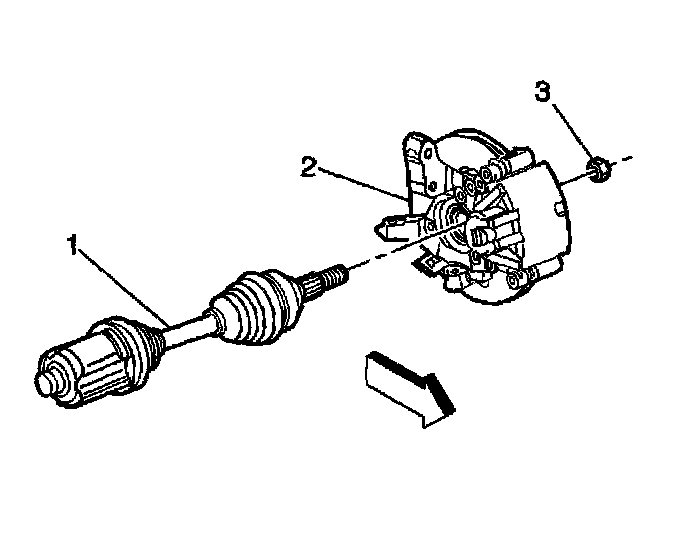 3. Install the wheel drive shaft to the hub and bearing (2).