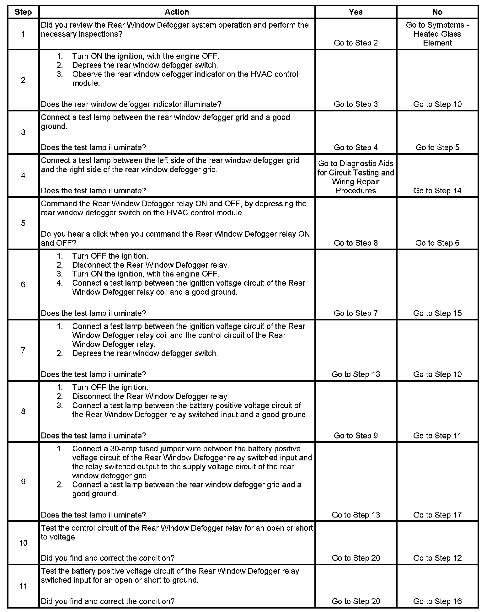 5. Listen for an audible click when the Rear Window Defogger relay operates. Command both the ON and OFF states of the Rear Window Defogger relay. Repeat the commands, as necessary.
