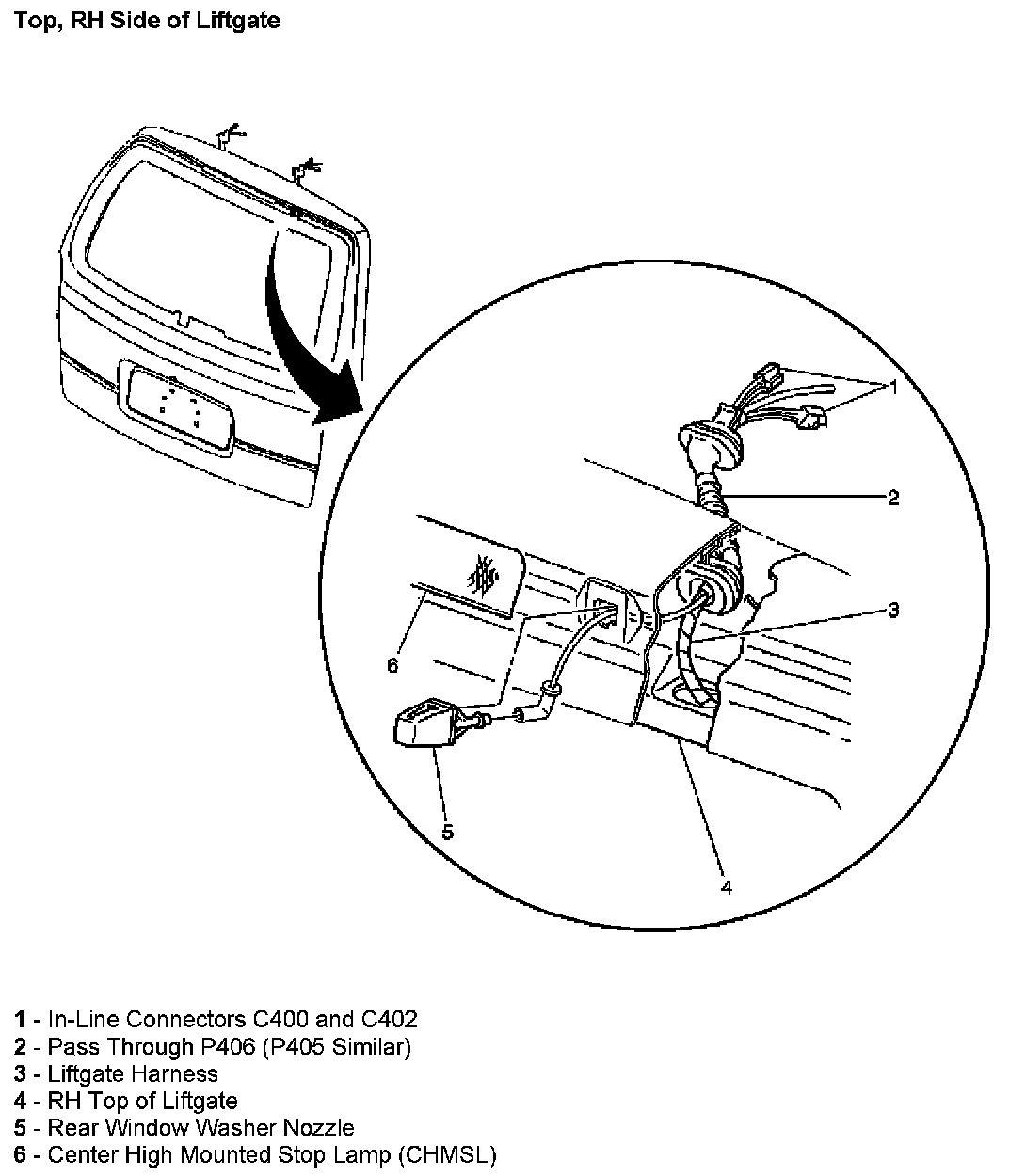 Top, RH Side Of Liftgate: