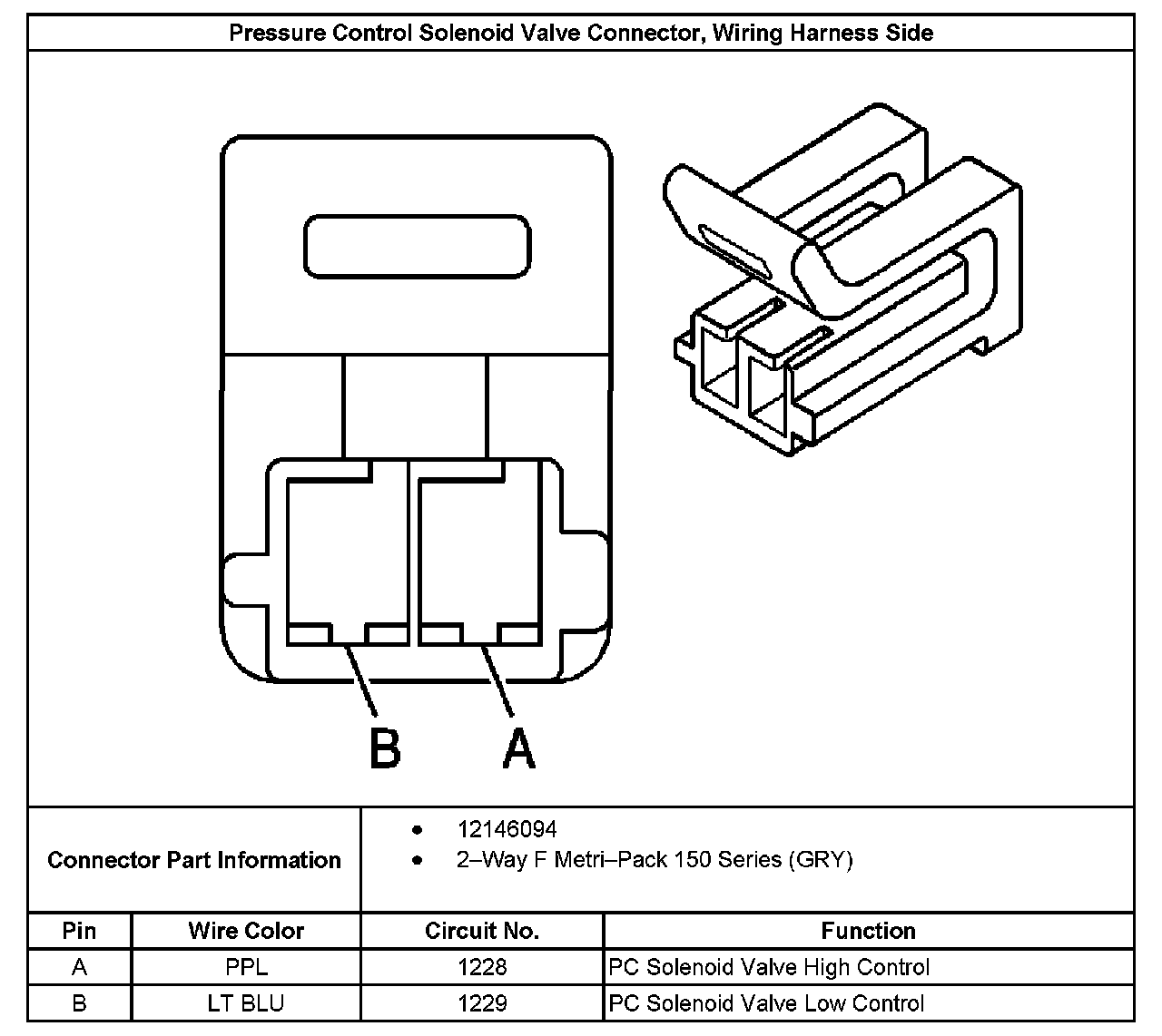 Pressure Control Solenoid Valve Connector, Wiring Harness Side: