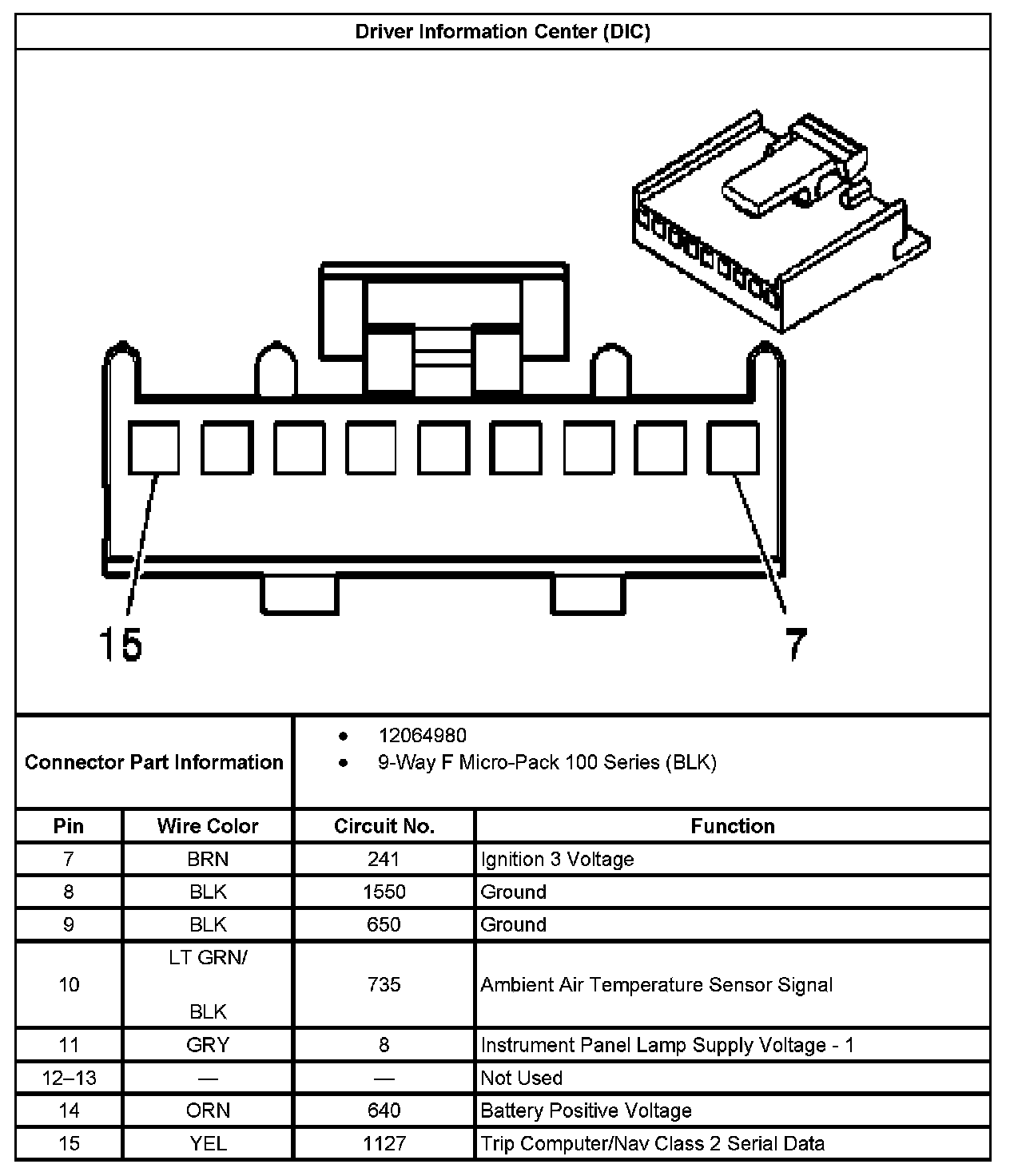 Driver Information Center (DIC):