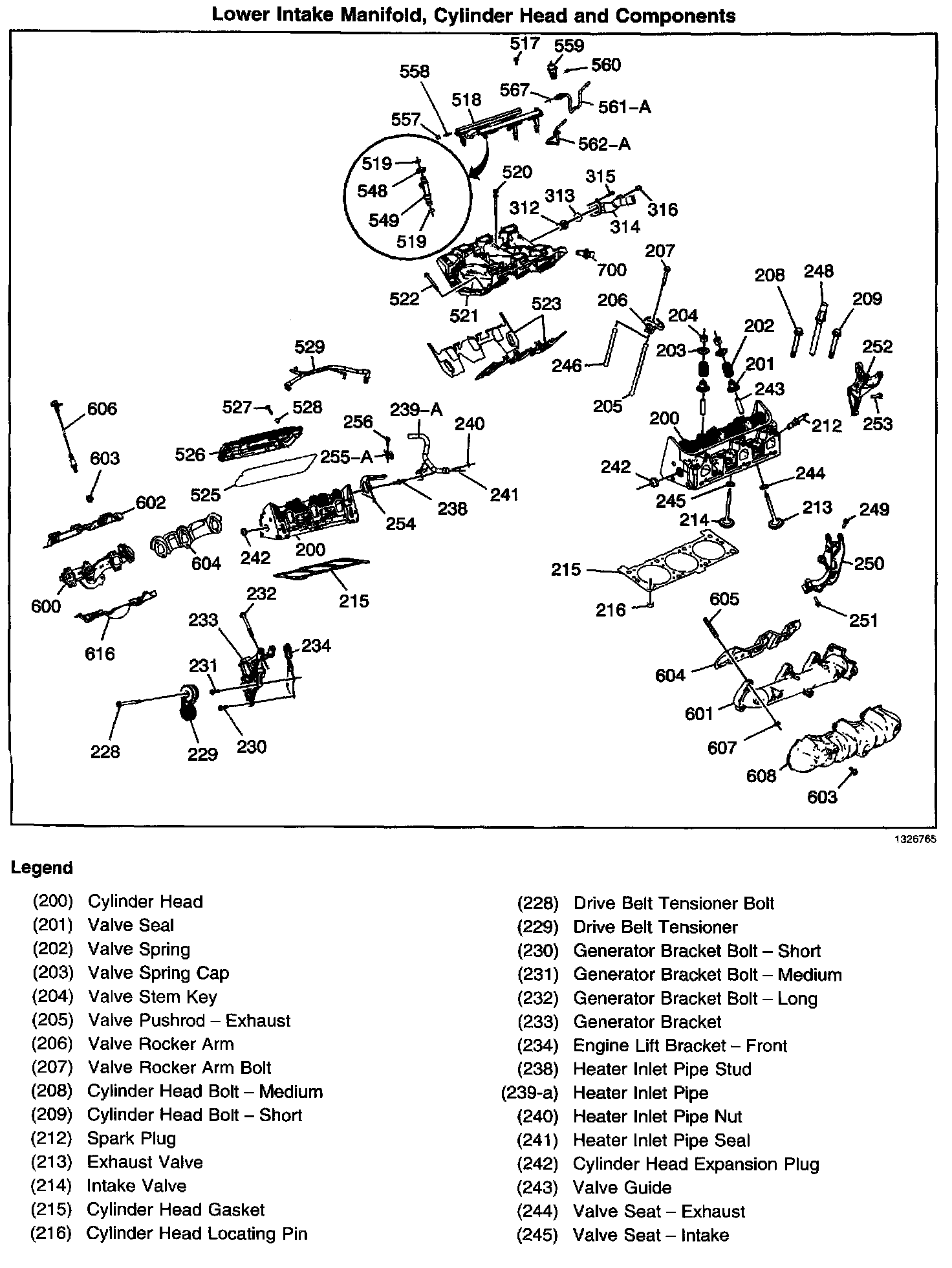 Lower Intake Manifold, Cylinder Head, and Components