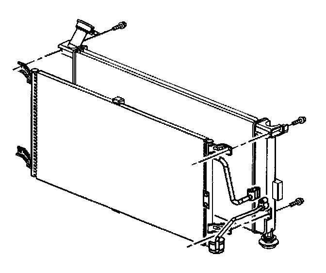 18. Remove the mounting bolts that secure the condenser to the radiator.