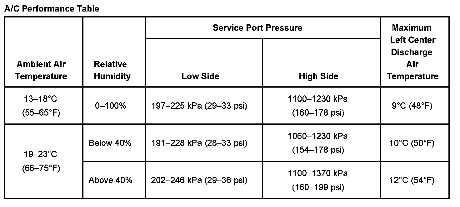 A/C Performance Table Part 1: