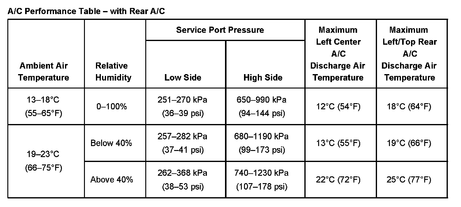 A/C Performance Table - With Rear A/C Part 1: