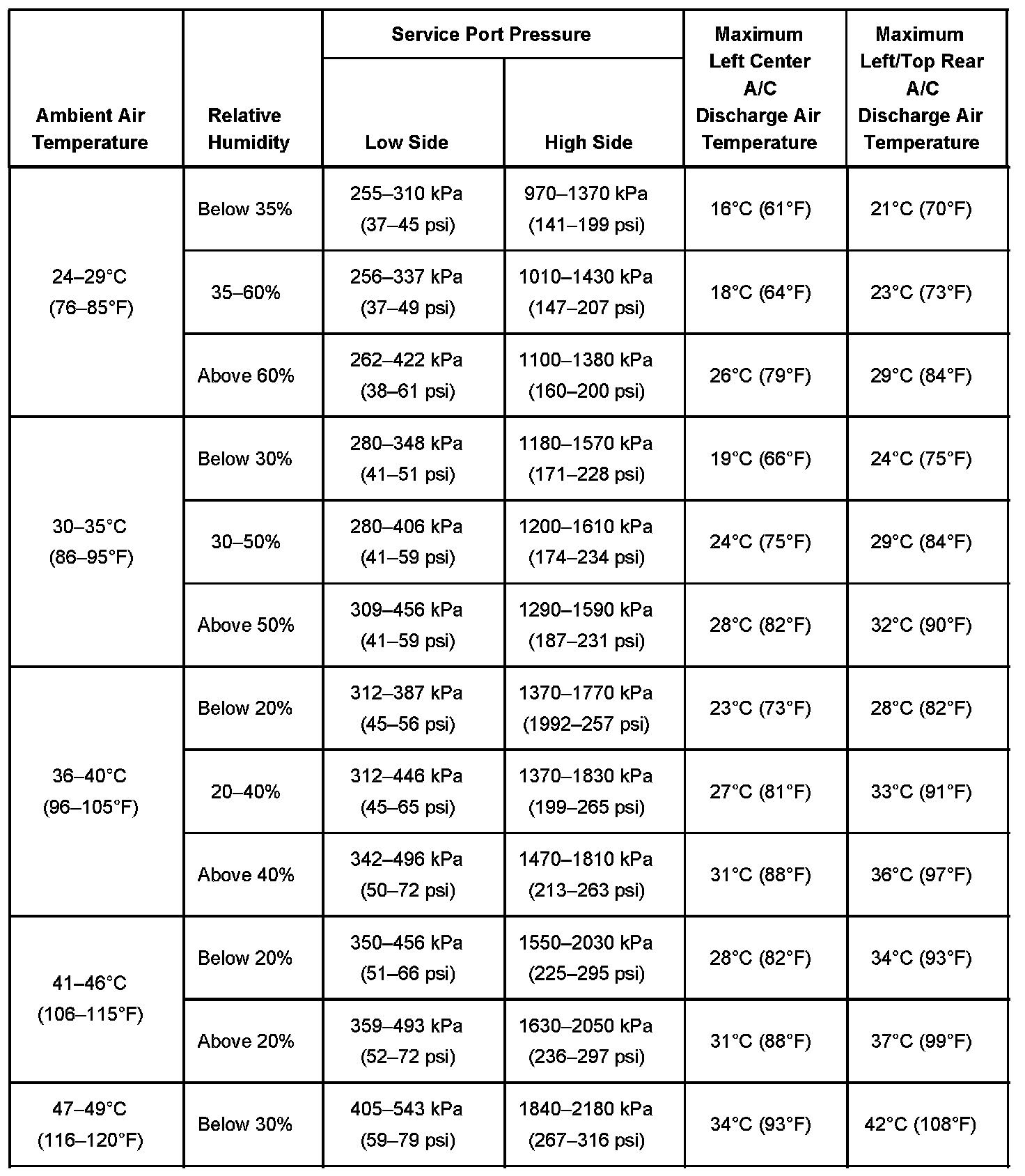 A/C Performance Table With Rear A/C Part 2:
