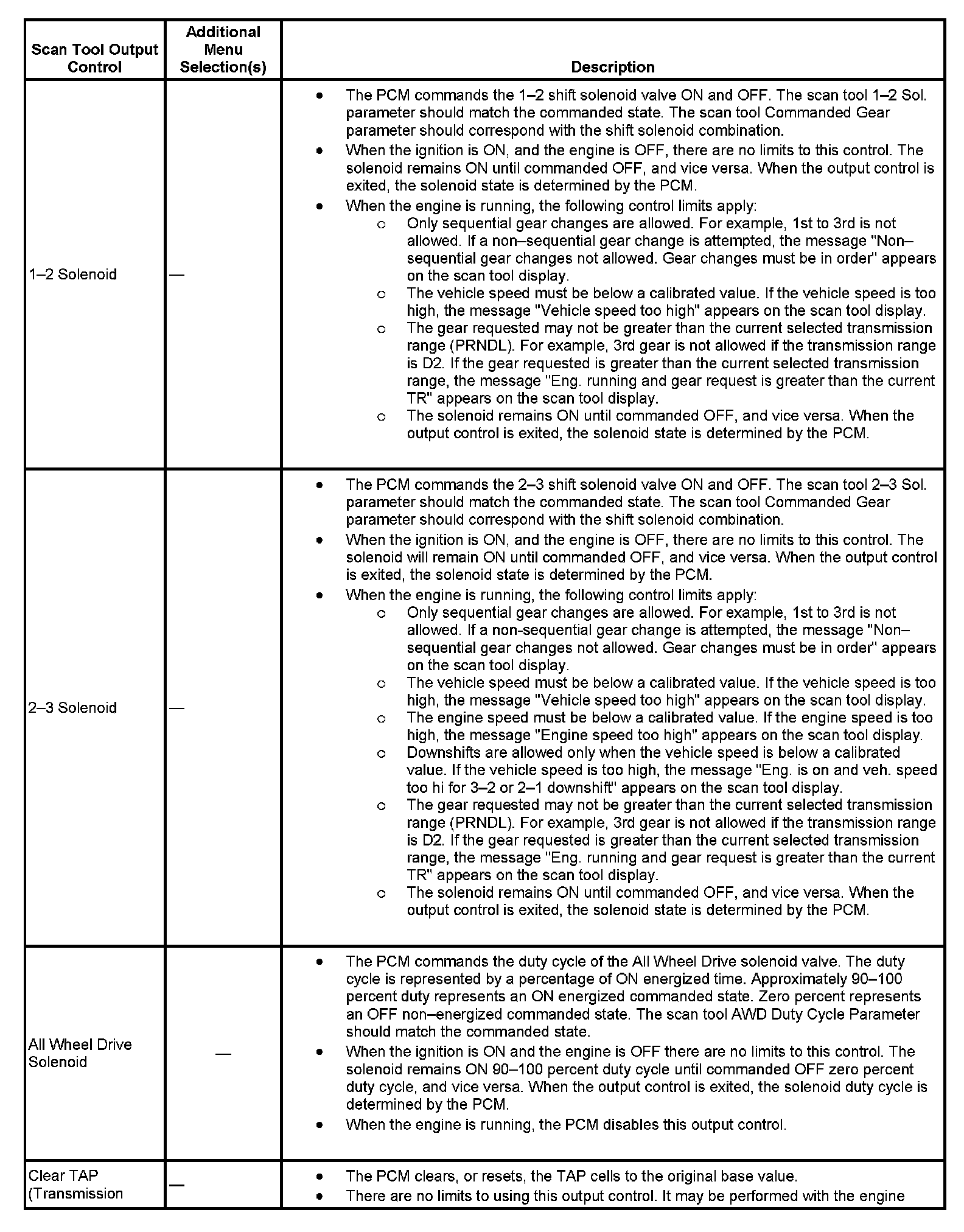 Scan Tool Output Controls
