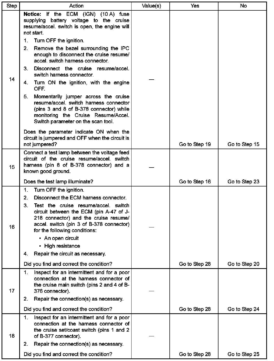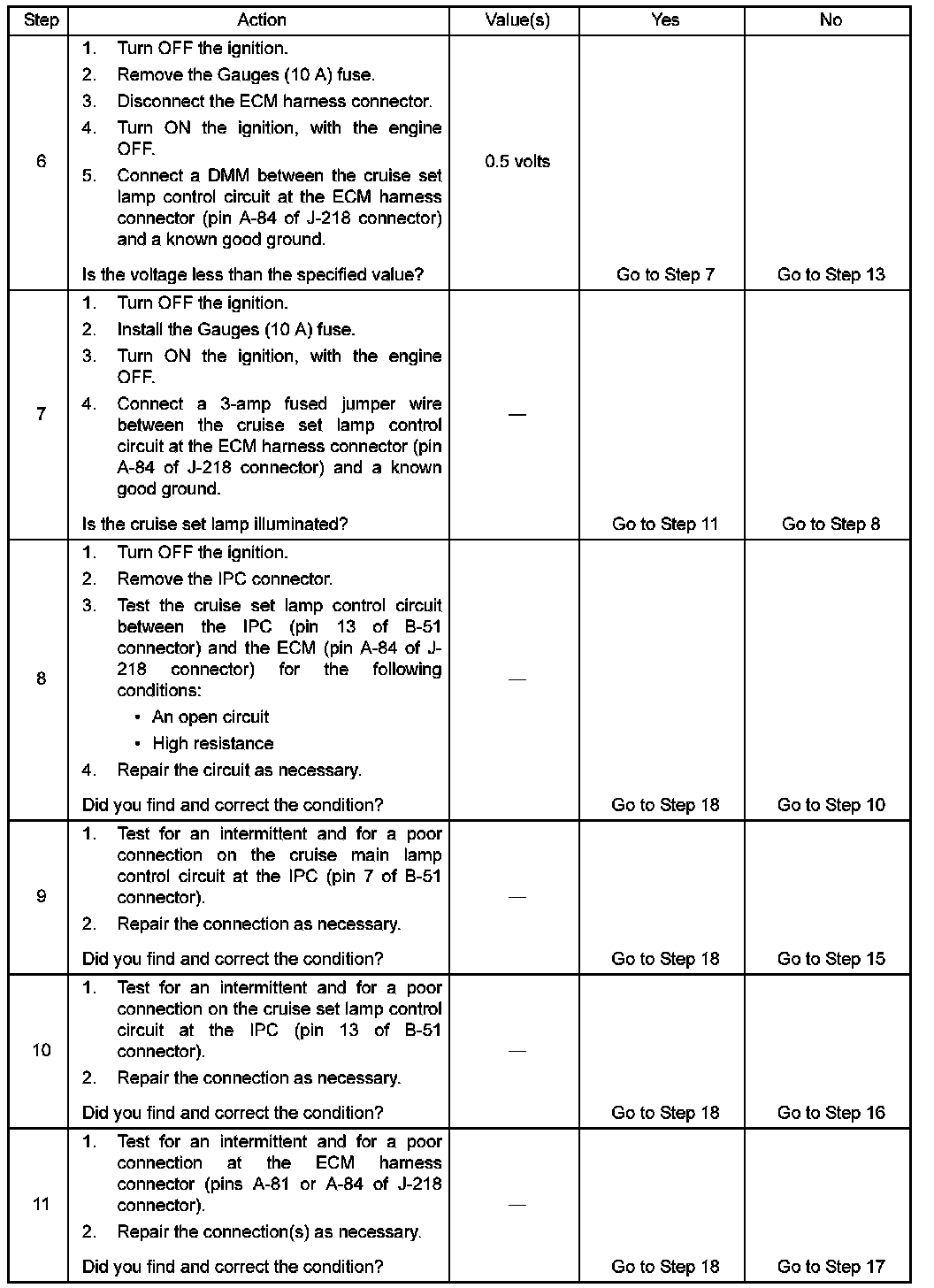- The DTCs relating to the cruise control system are set.