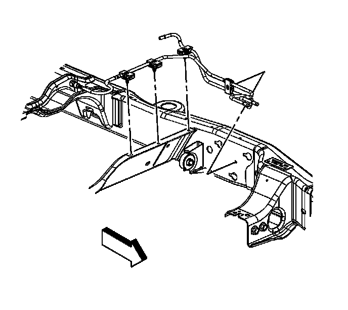 2. Install the fuel and EVAP line clips to the frame and brace.