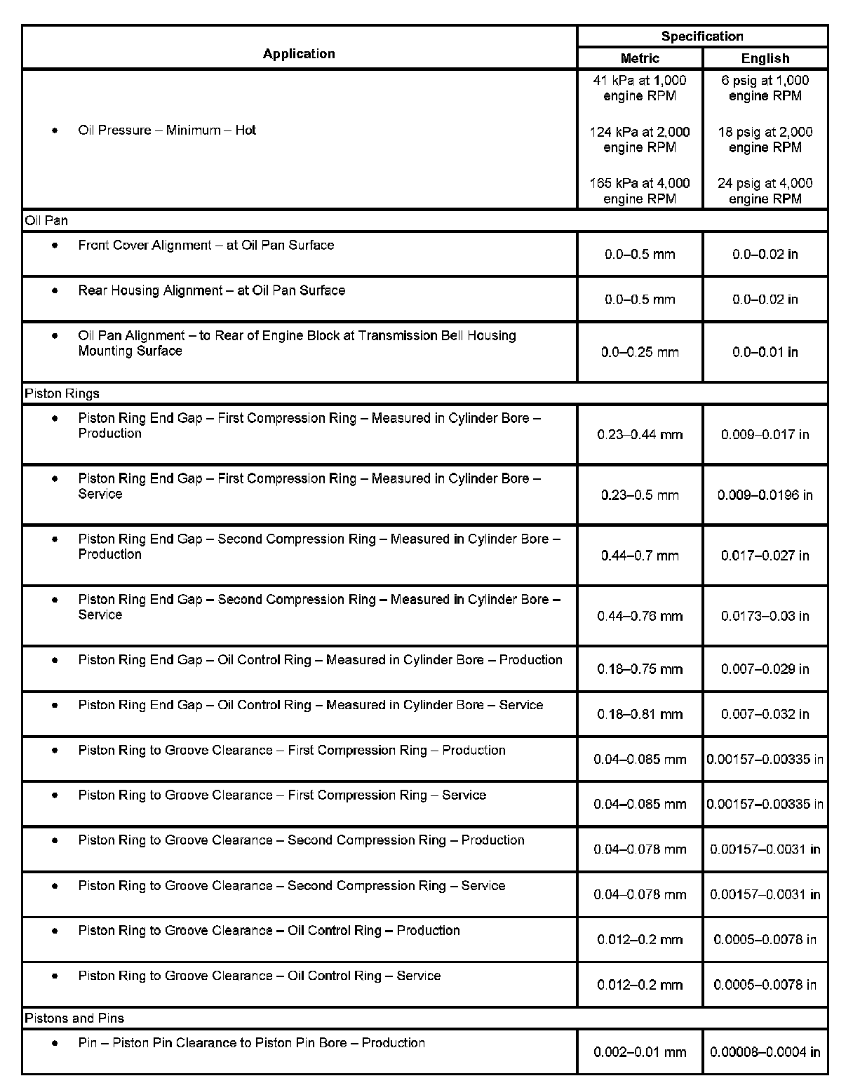 Engine General Specifications & Service Limits