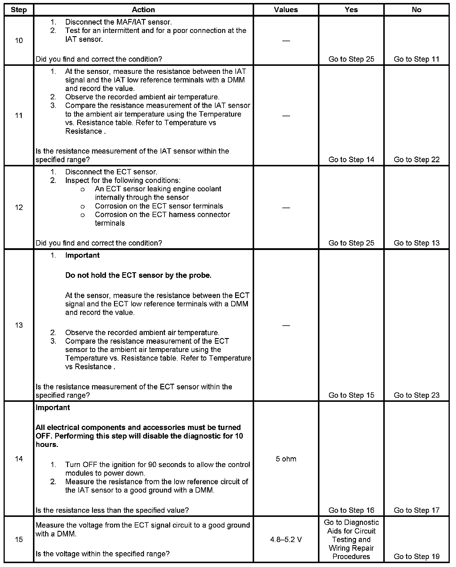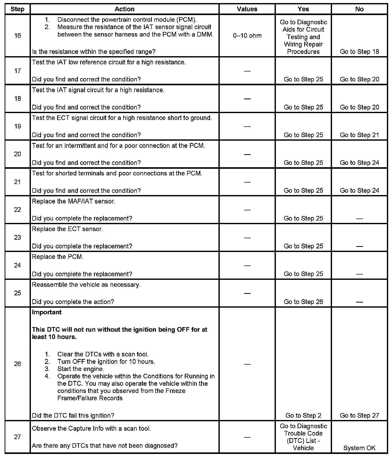 If the start-up ECT is more than the start-up IAT by 15°C (27°F), then the vehicle must be driven for more than 400 seconds over 24 km/h (15 mph). If the IAT sensor temperature decreases more than 8°C (14°F), a block heater is detected and the test is aborted. If the IAT sensor temperature does not decrease, a block heater was not detected and DTC P0116 sets.