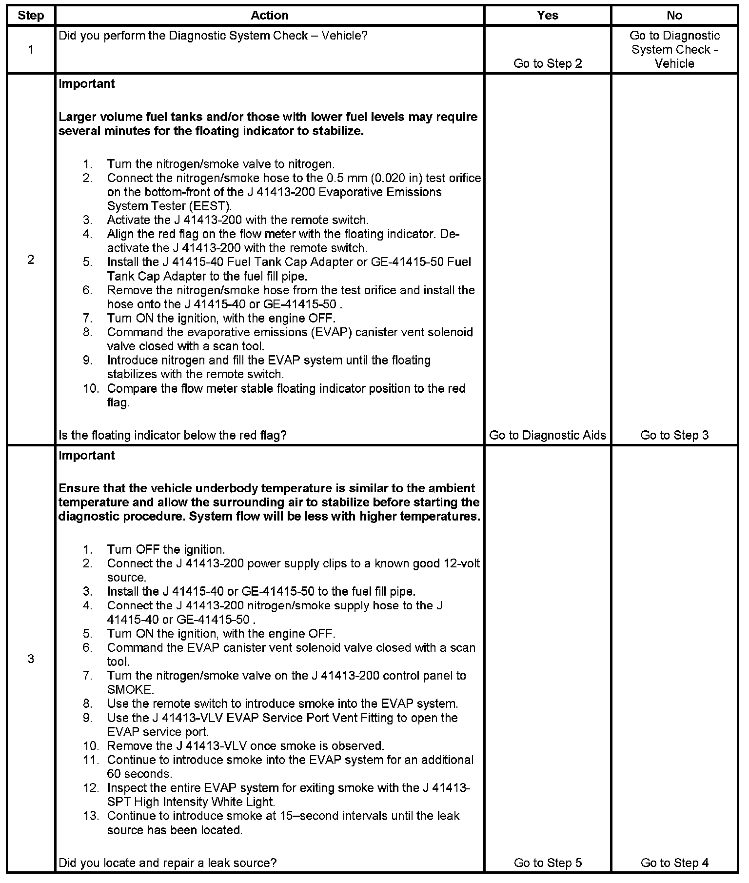 - To help locate intermittent leaks, use the J 41413-200 Evaporative Emissions System Tester (EEST) to introduce smoke into the EVAP system. Move all EVAP components while observing smoke with the J 41413-SPT High Intensity White Light.