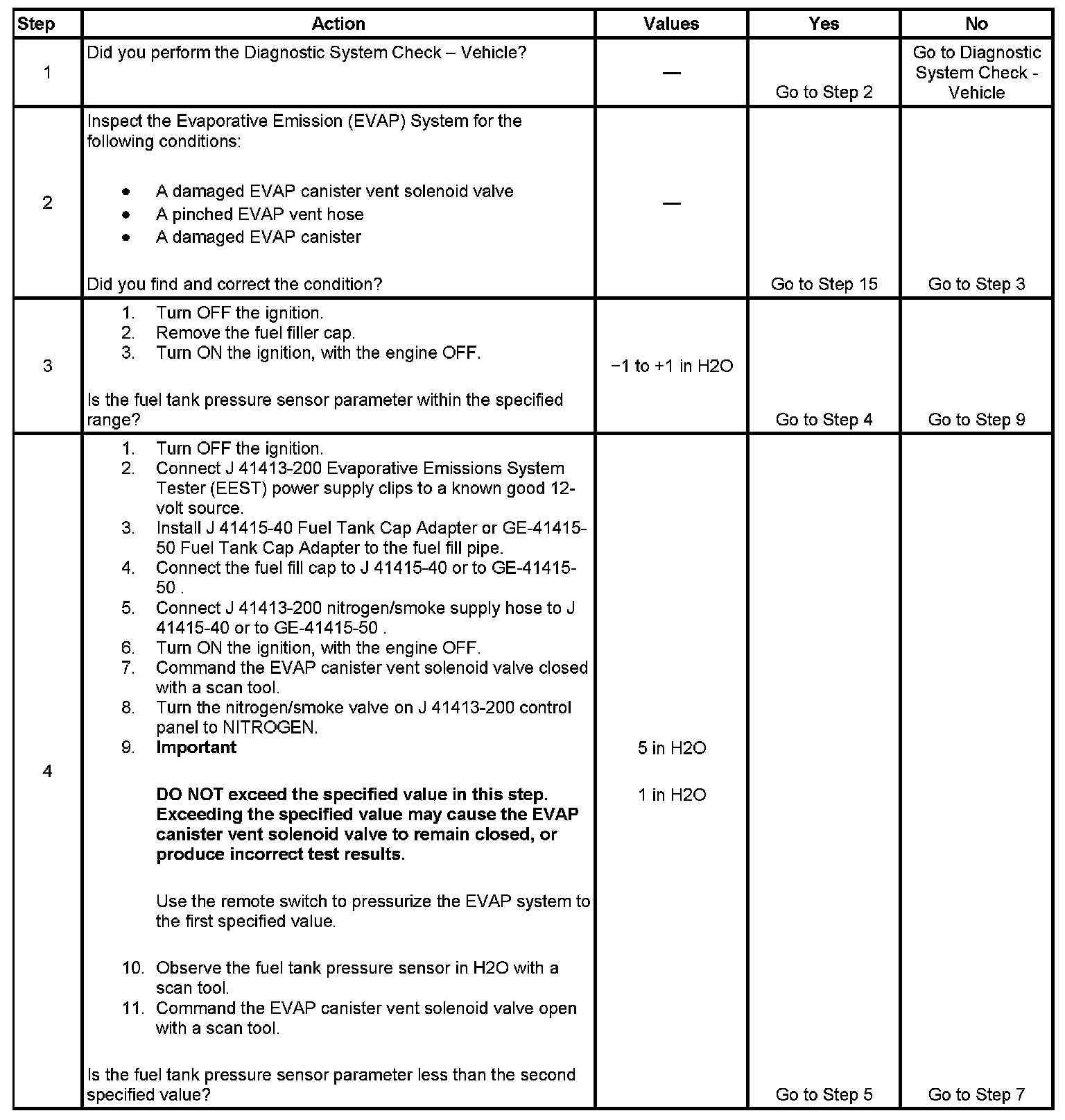 - The fuel tank pressure sensor is less than -12 inches H2O.