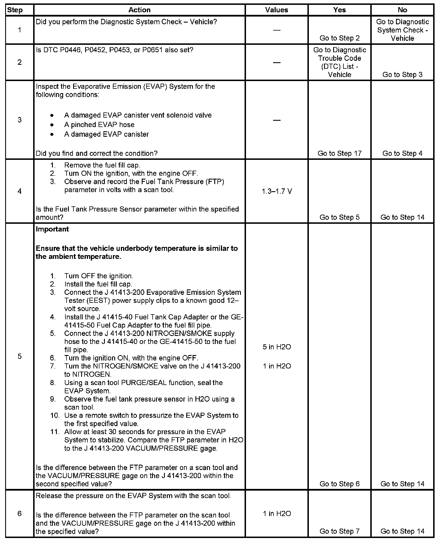 - A restriction in the EVAP canister or vent lines could prevent fuel vapor pressure from bleeding off fast enough. If the vent system cannot bleed off pressure fast enough, this code can set. When pressure is applied to the system and released, a properly operating system will return to the atmospheric pressure rapidly. By using a scan tool and the J 41413-200 pressure can be applied to the system, then released, while monitoring the FTP Sensor parameter to see that pressure can be released within 30 seconds.