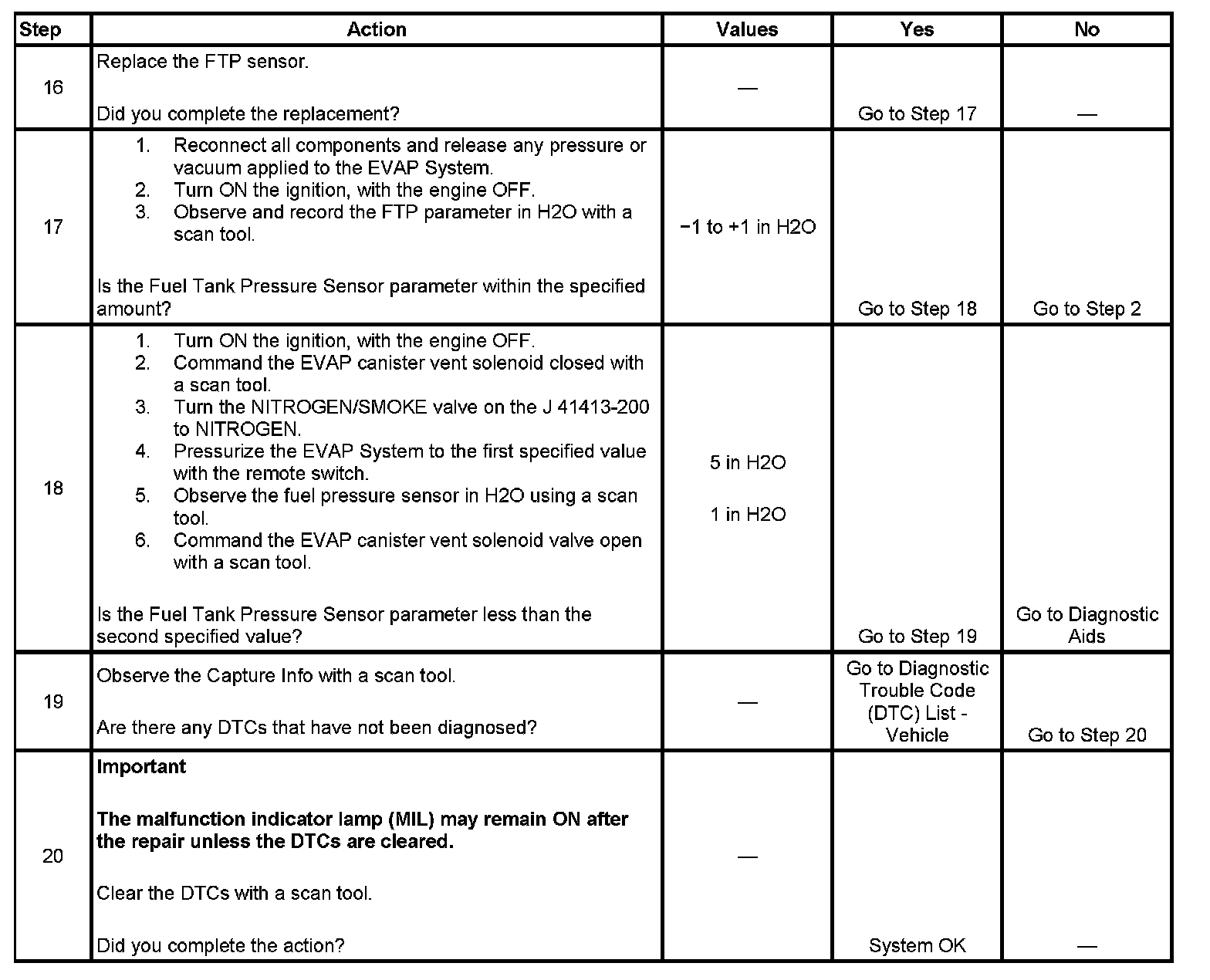- A current DTC, Last Test Failed, clears when the diagnostic runs and passes.