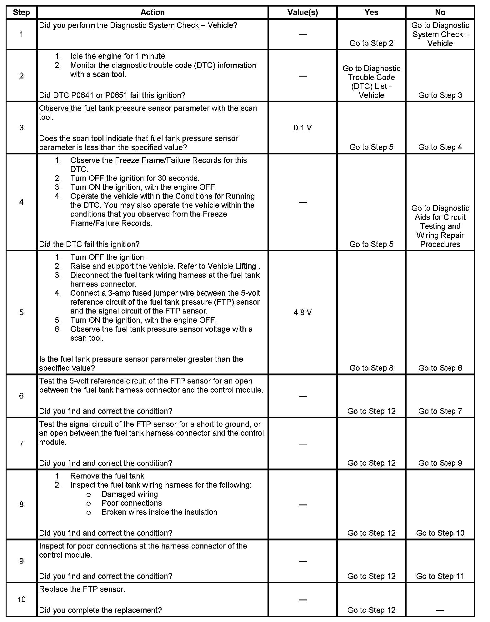 - The FTP sensor voltage is less than 0.1 volts.