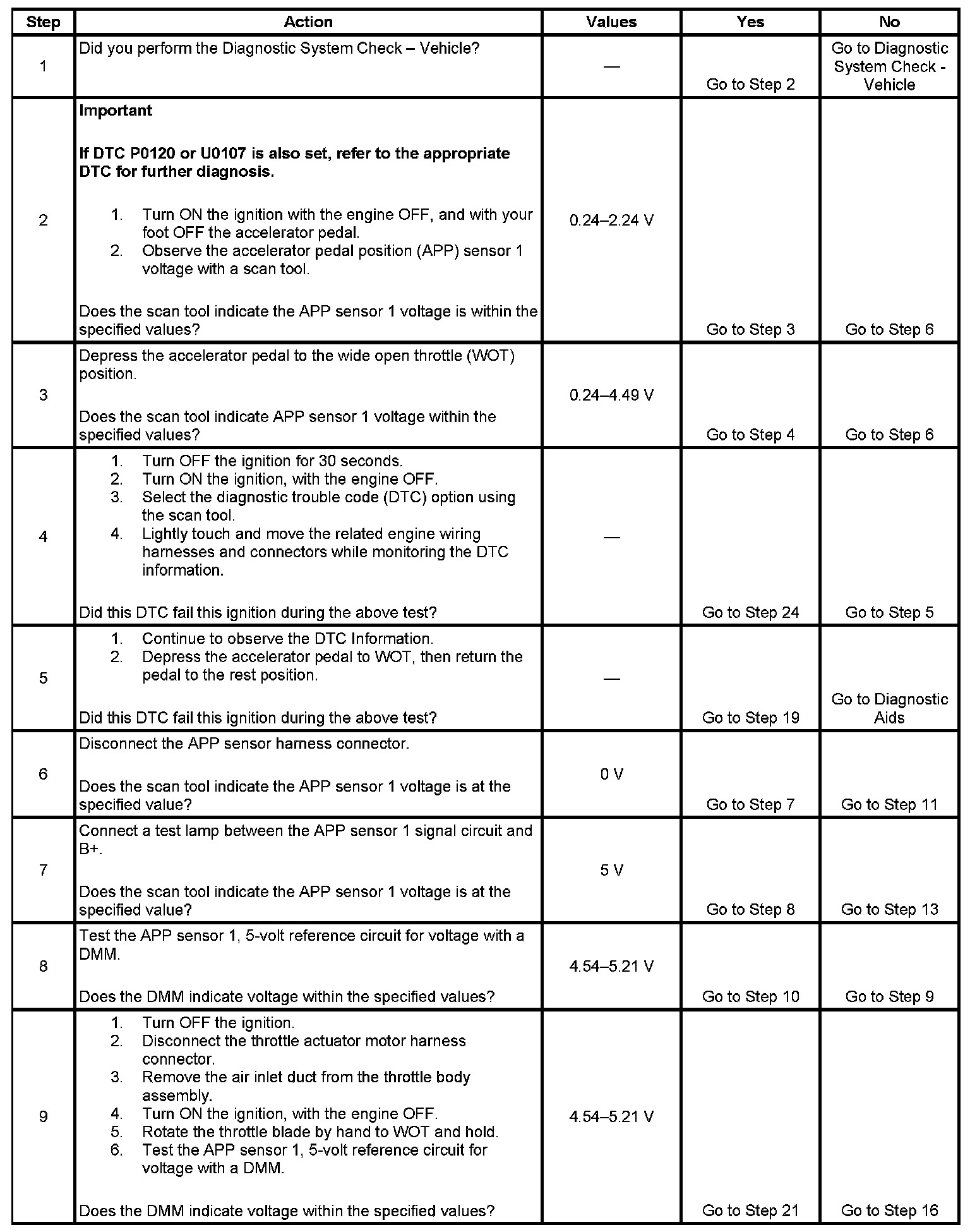 DTC P2120 Accelerator Pedal Position (APP) Sensor 1 Circuit